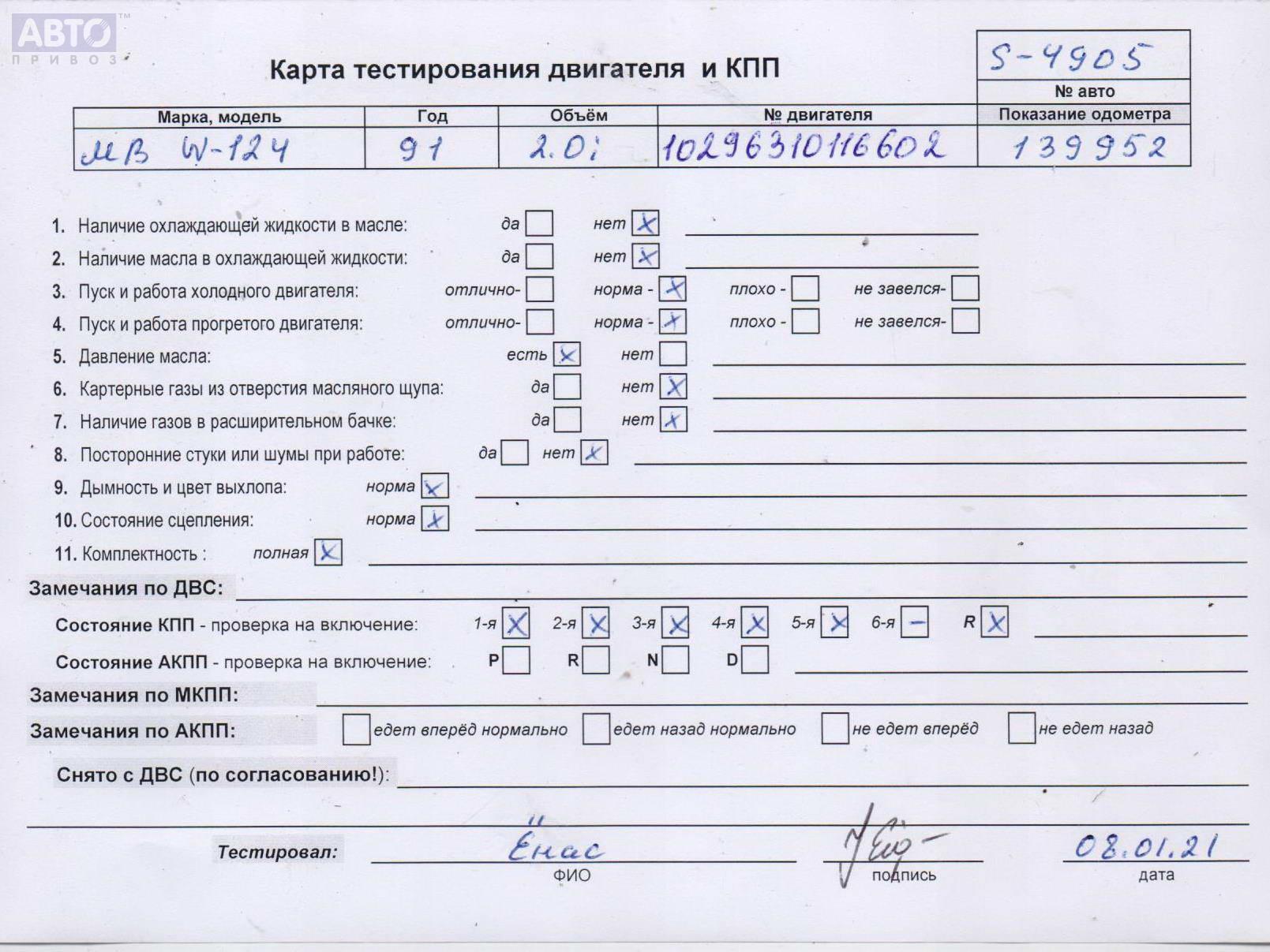 | Марка / Модель / Год: | Mercedes W124 (1985-1995) 1991 |