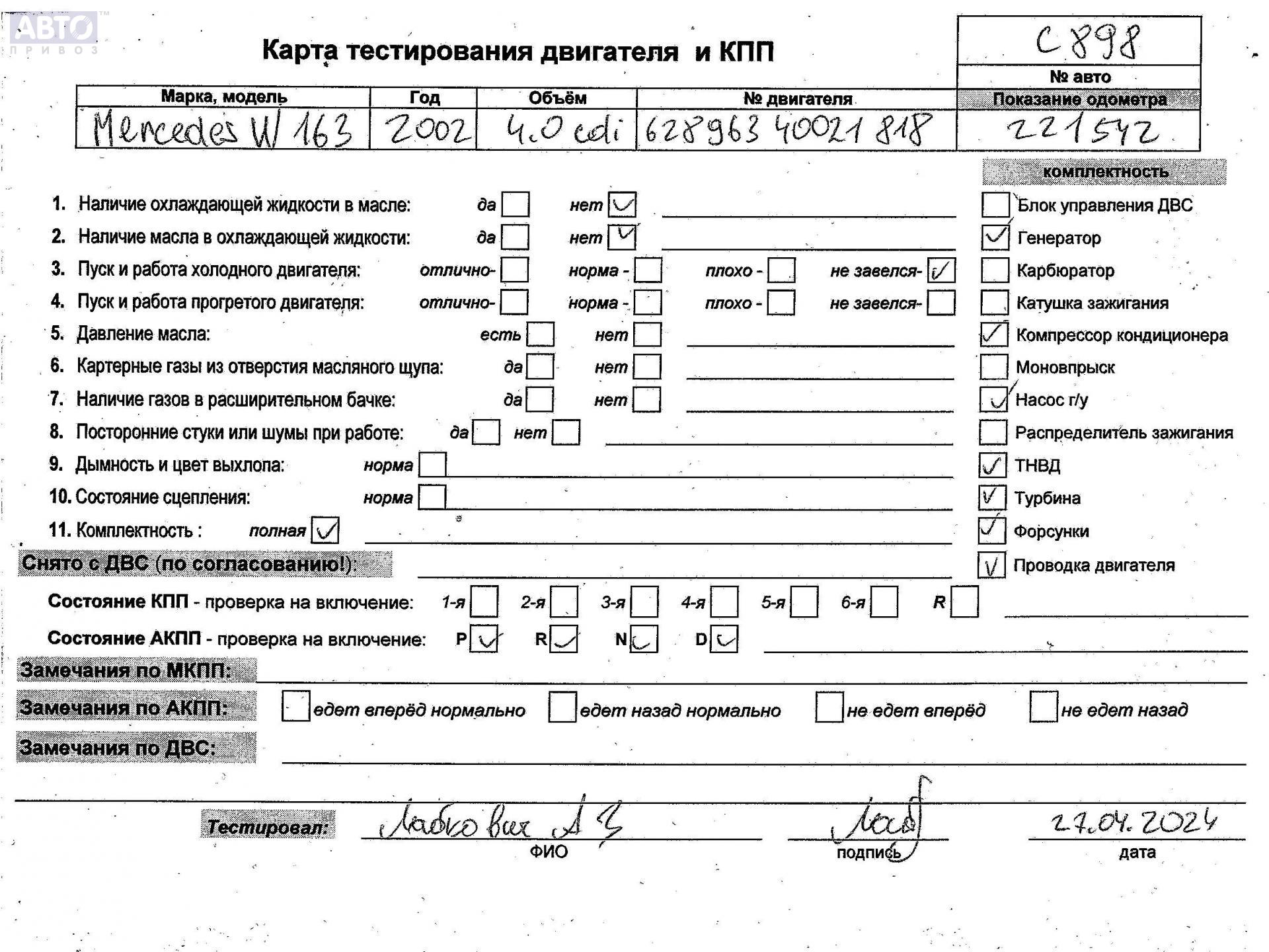 | Автомобиль / VIN: | C0898 WDC1631281A391602 |