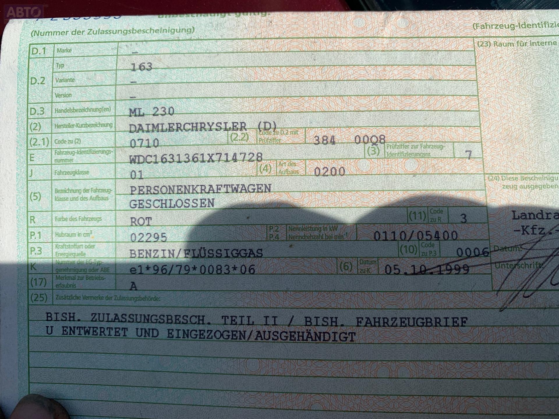 | Марка / Модель / Год: | Mercedes M-Class ML W163 (1998-2004) 2000 |