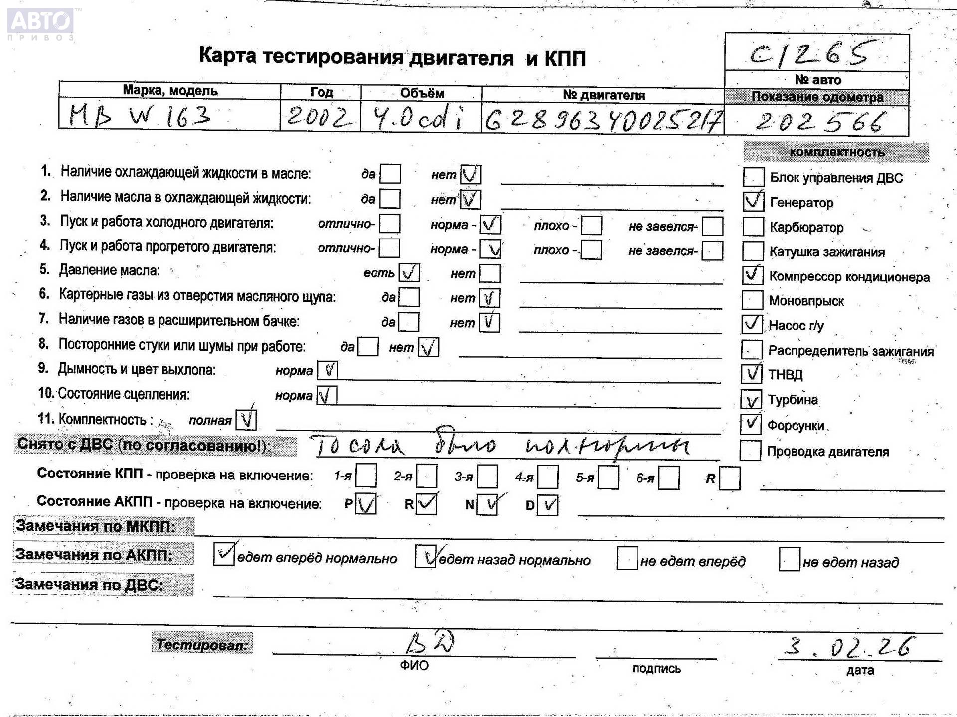 | Автомобиль / VIN: | C1265 WDC1631281A415158 |