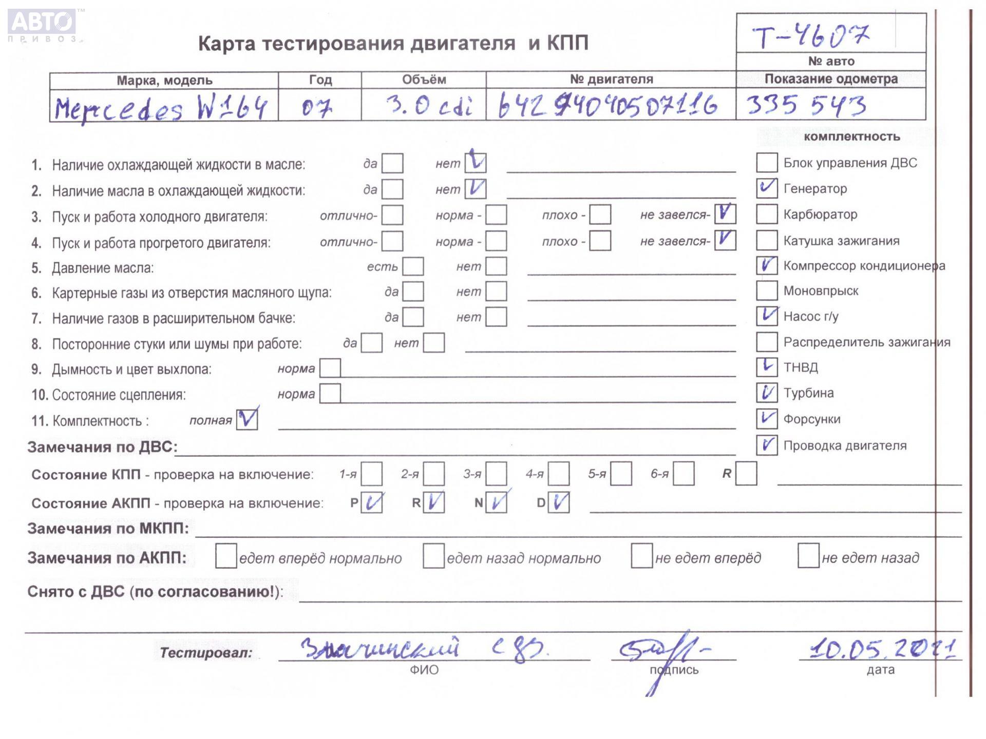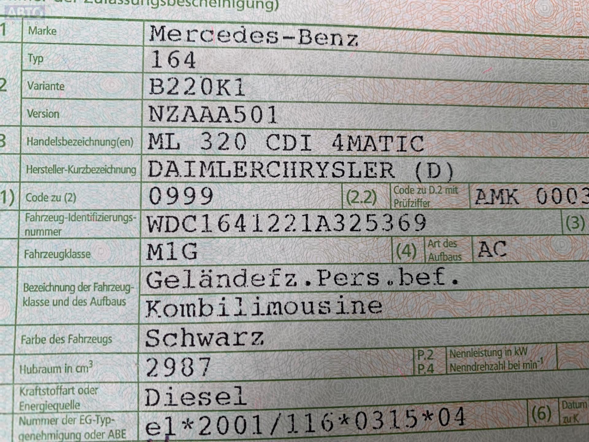 | Марка / Модель / Год: | Mercedes M-Class ML W164 (2005-2011) 2007 |