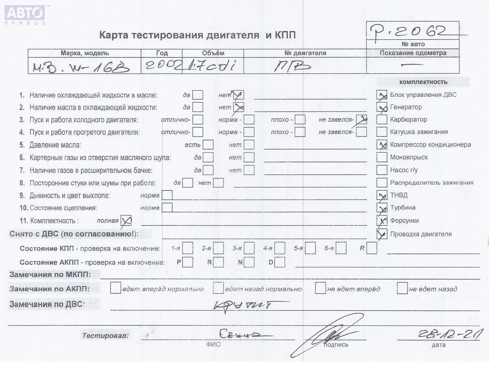 | Автомобиль / VIN: | P2062 WDB1681091J875114 |