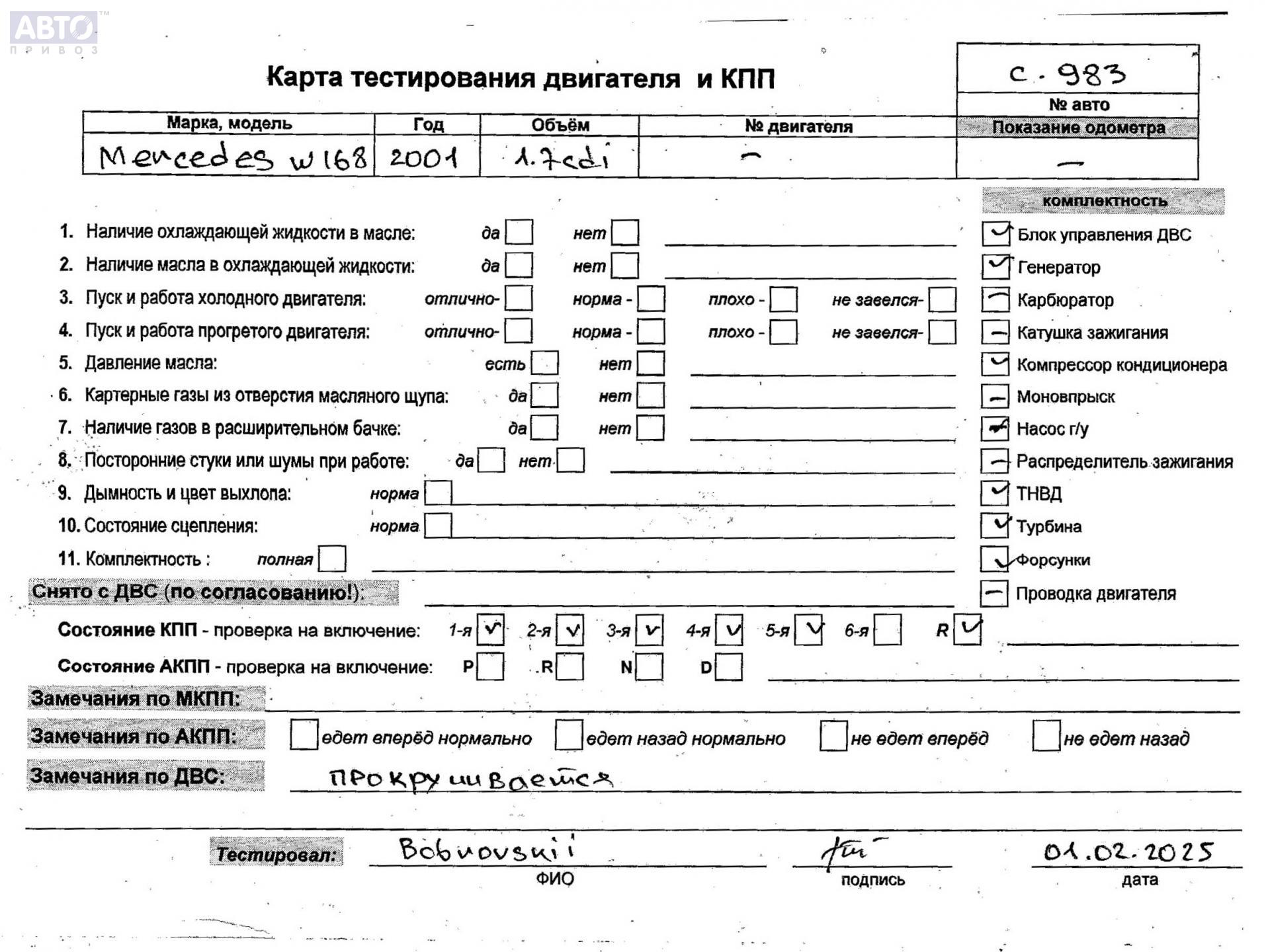 | Марка / Модель / Год: | Mercedes A-Class W168 (1997-2004) 2001 |