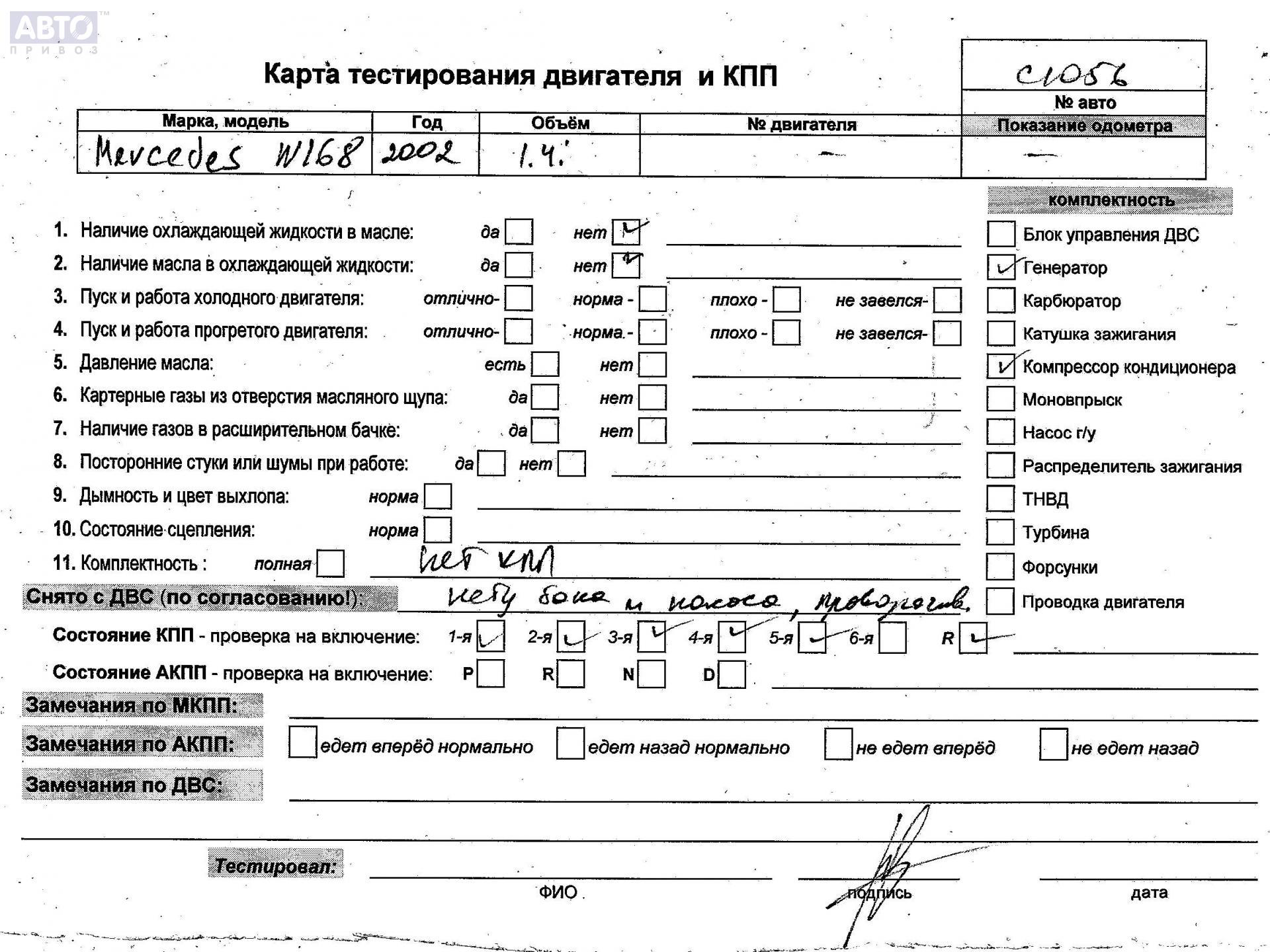| Марка / Модель / Год: | Mercedes A-Class W168 (1997-2004) 2002 |