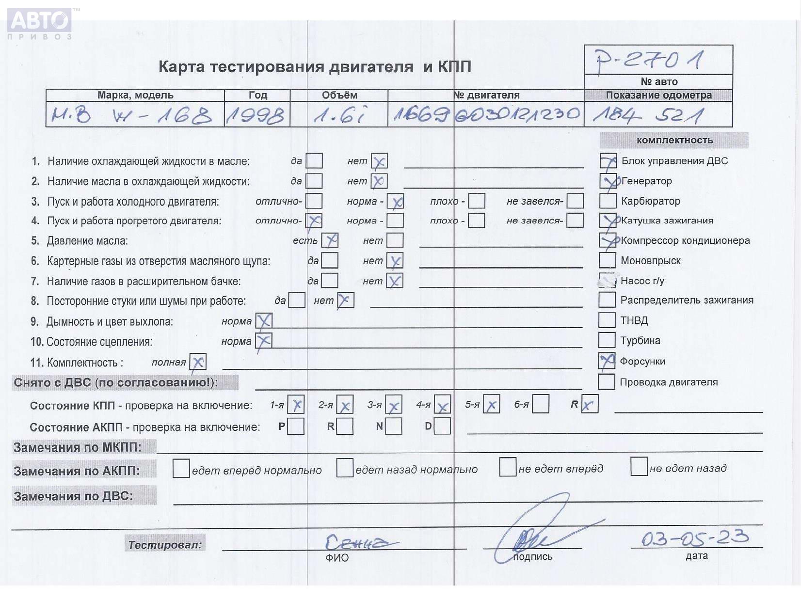 | Автомобиль / VIN: | P2701 WDB1680331J142329 |