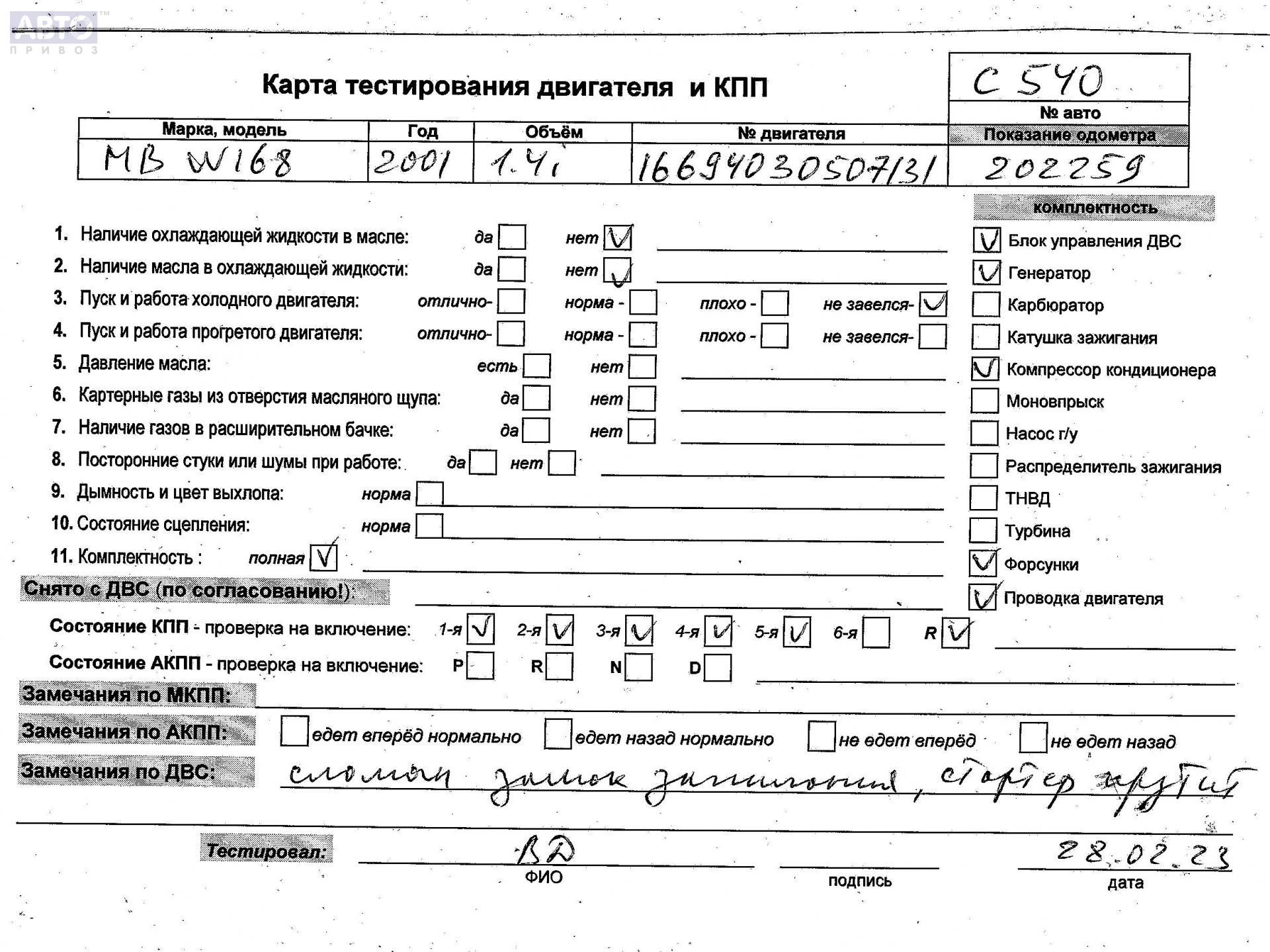 | Автомобиль / VIN: | C0540 WDB1680311J666051 |
