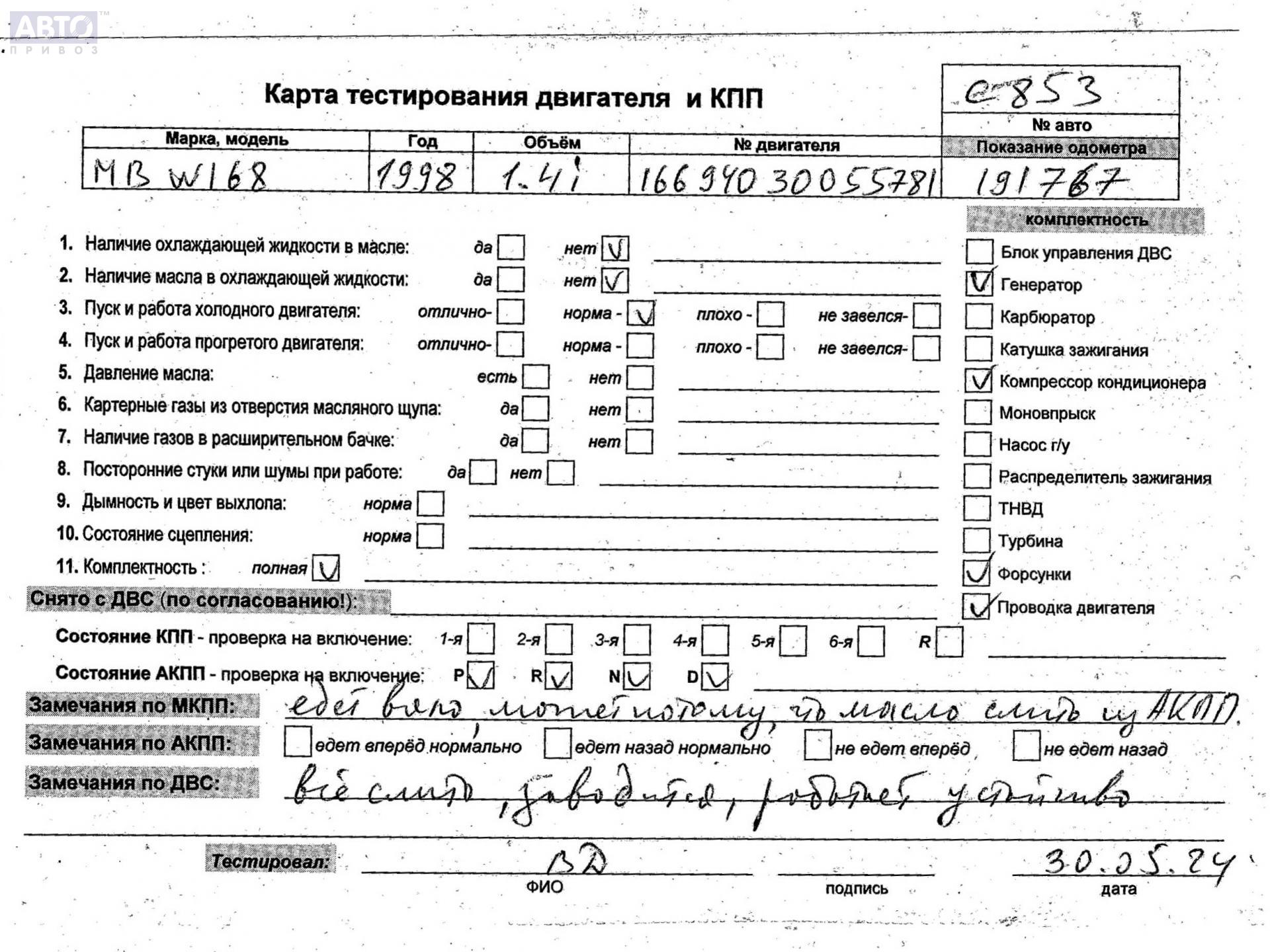 | Марка / Модель / Год: | Mercedes A-Class W168 (1997-2004) 1998 |