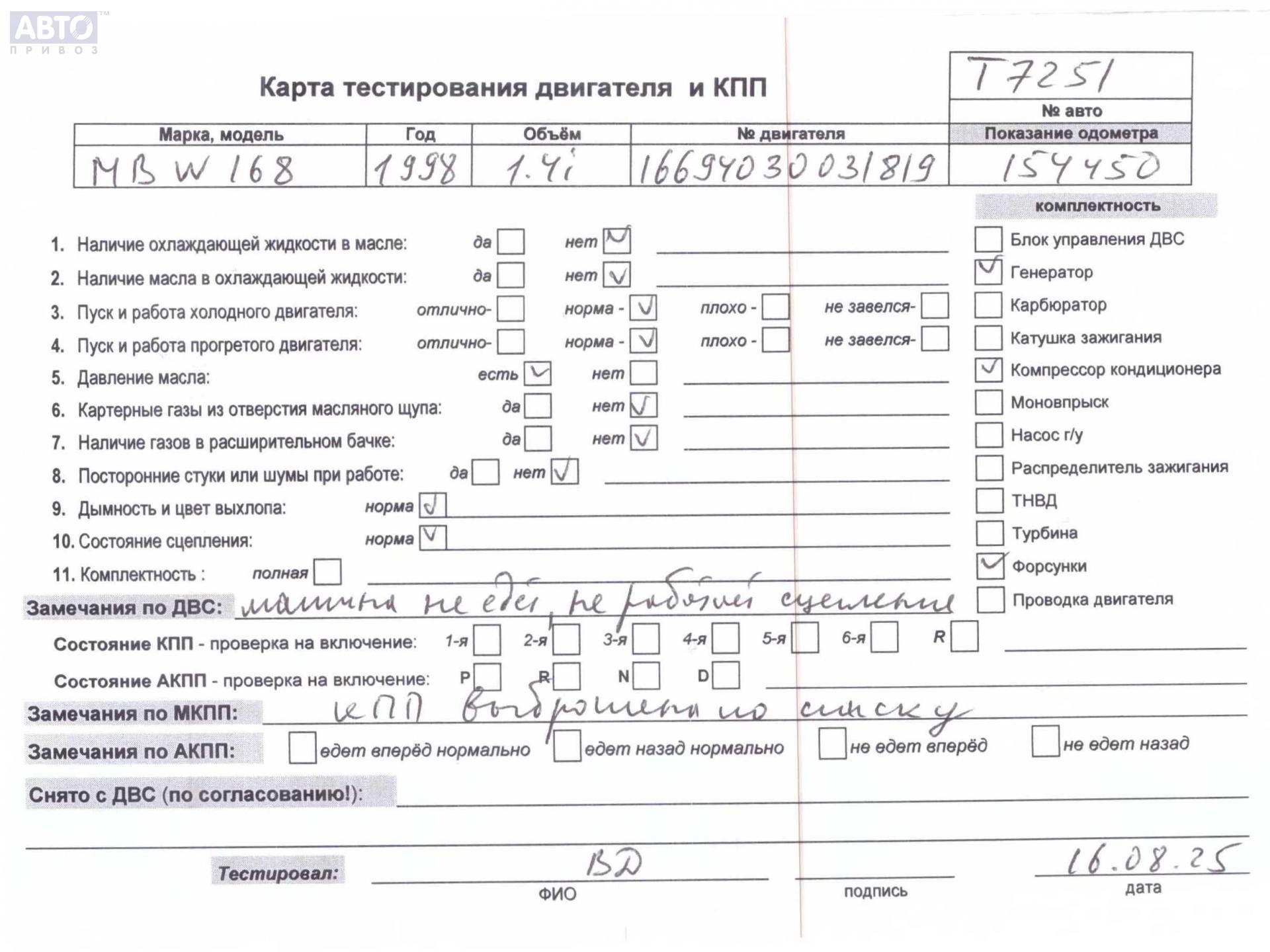 | Автомобиль / VIN: | T7251 WDB1680311J030162 |