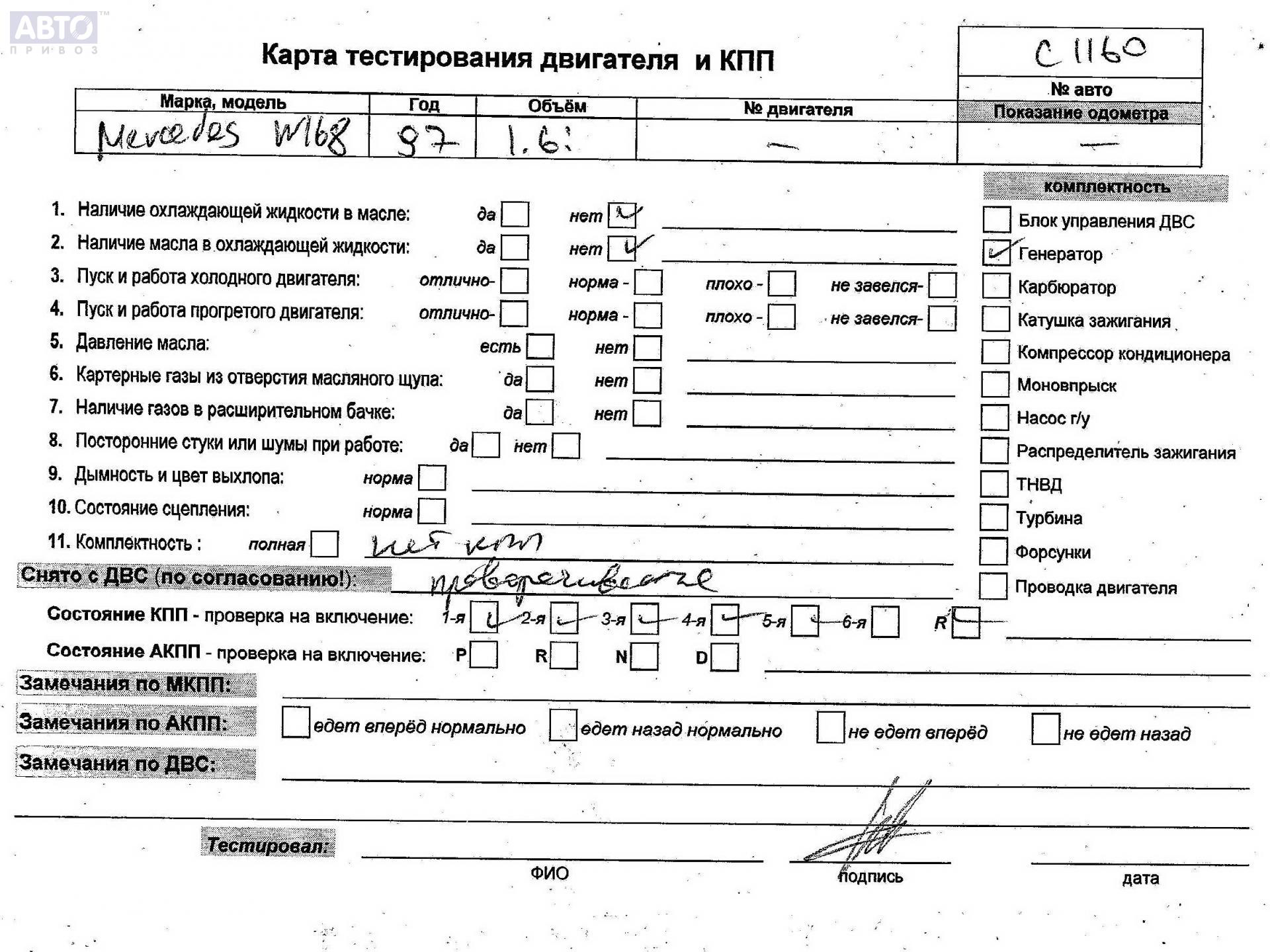 | Автомобиль / VIN: | C1160 WDB1680331J004351 |