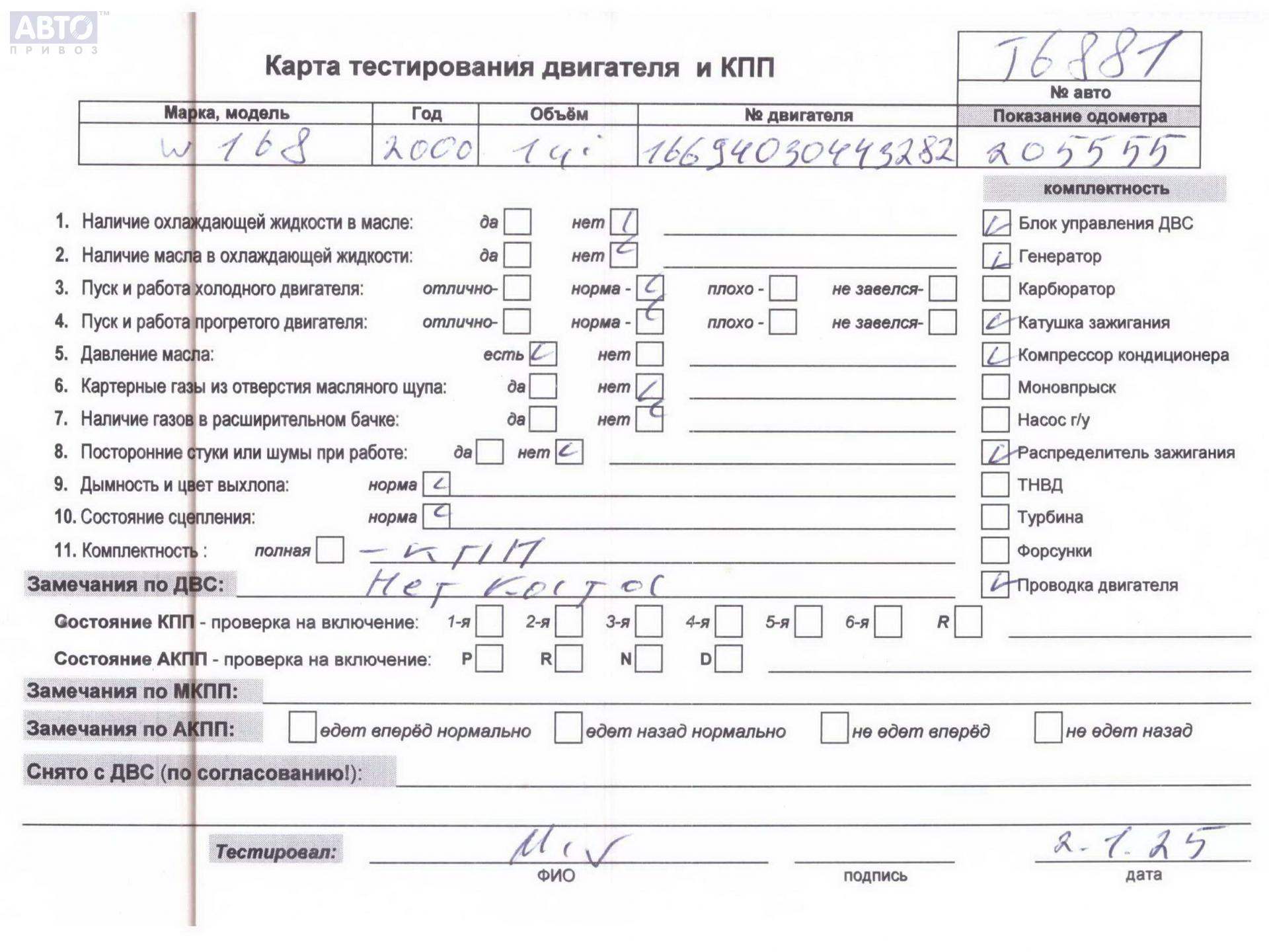| Марка / Модель / Год: | Mercedes A-Class W168 (1997-2004) 2001 |