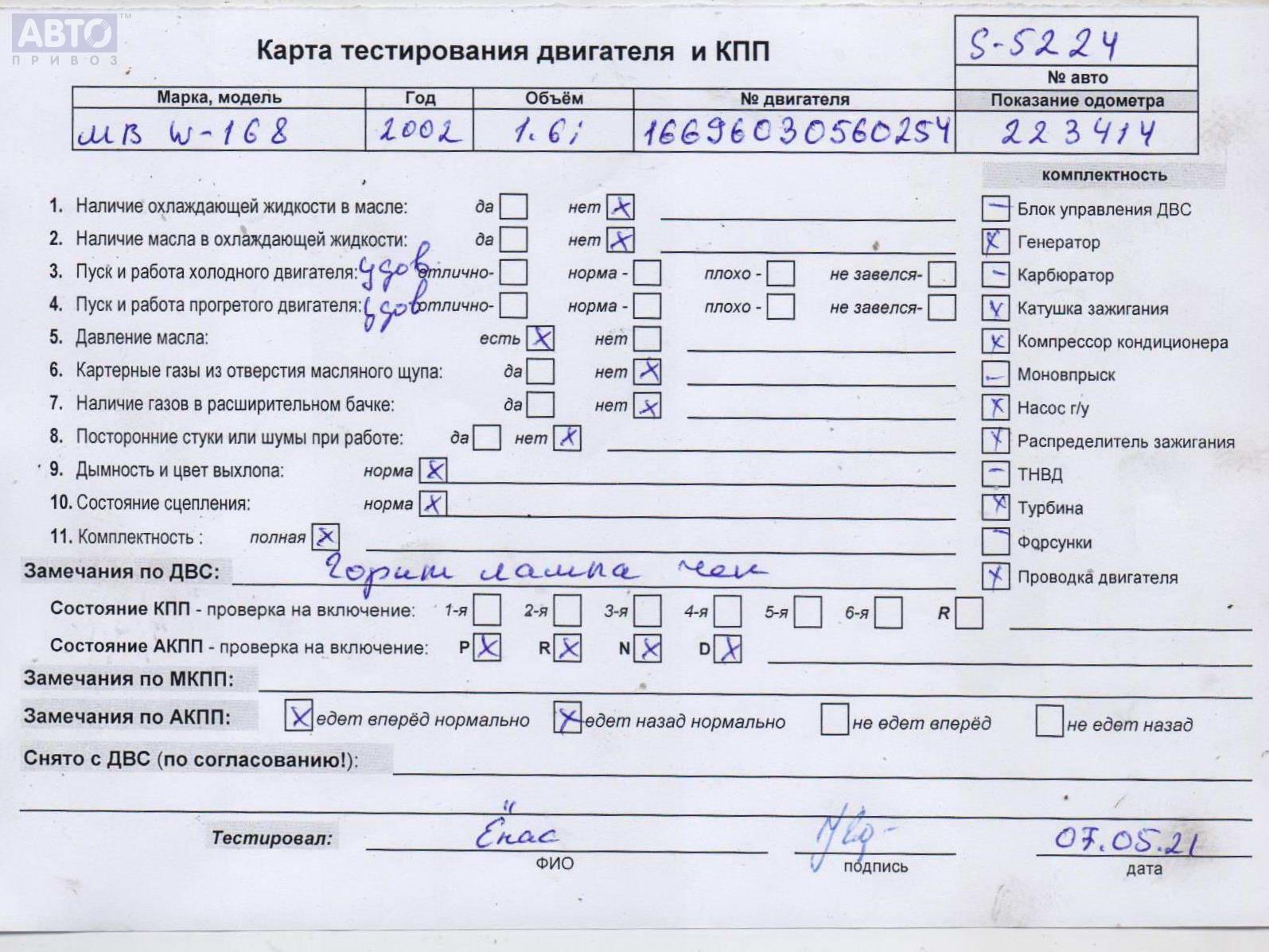 | Марка / Модель / Год: | Mercedes A-Class W168 (1997-2004) 2002 |