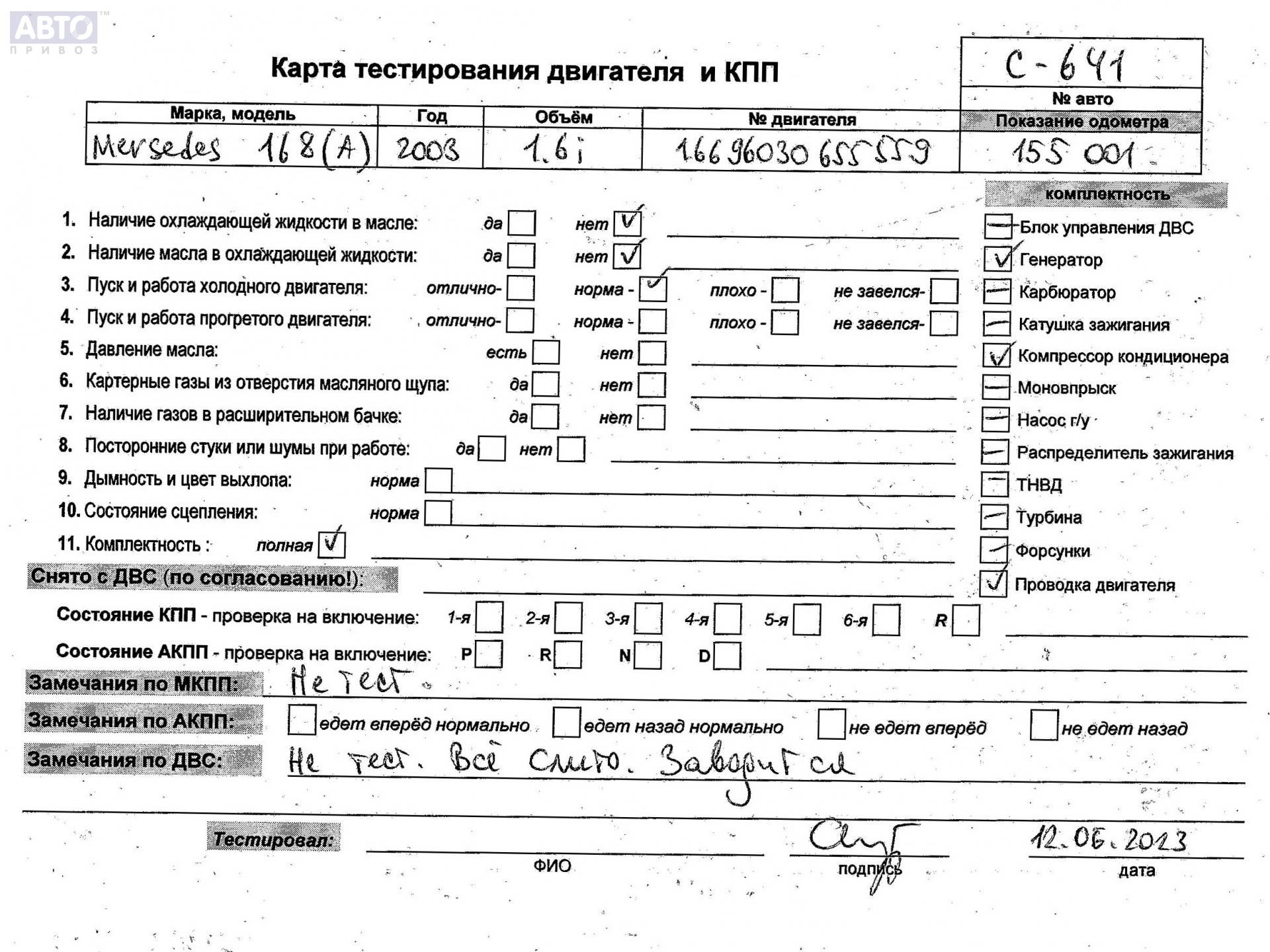 | Марка / Модель / Год: | Mercedes A-Class W168 (1997-2004) 2003 |