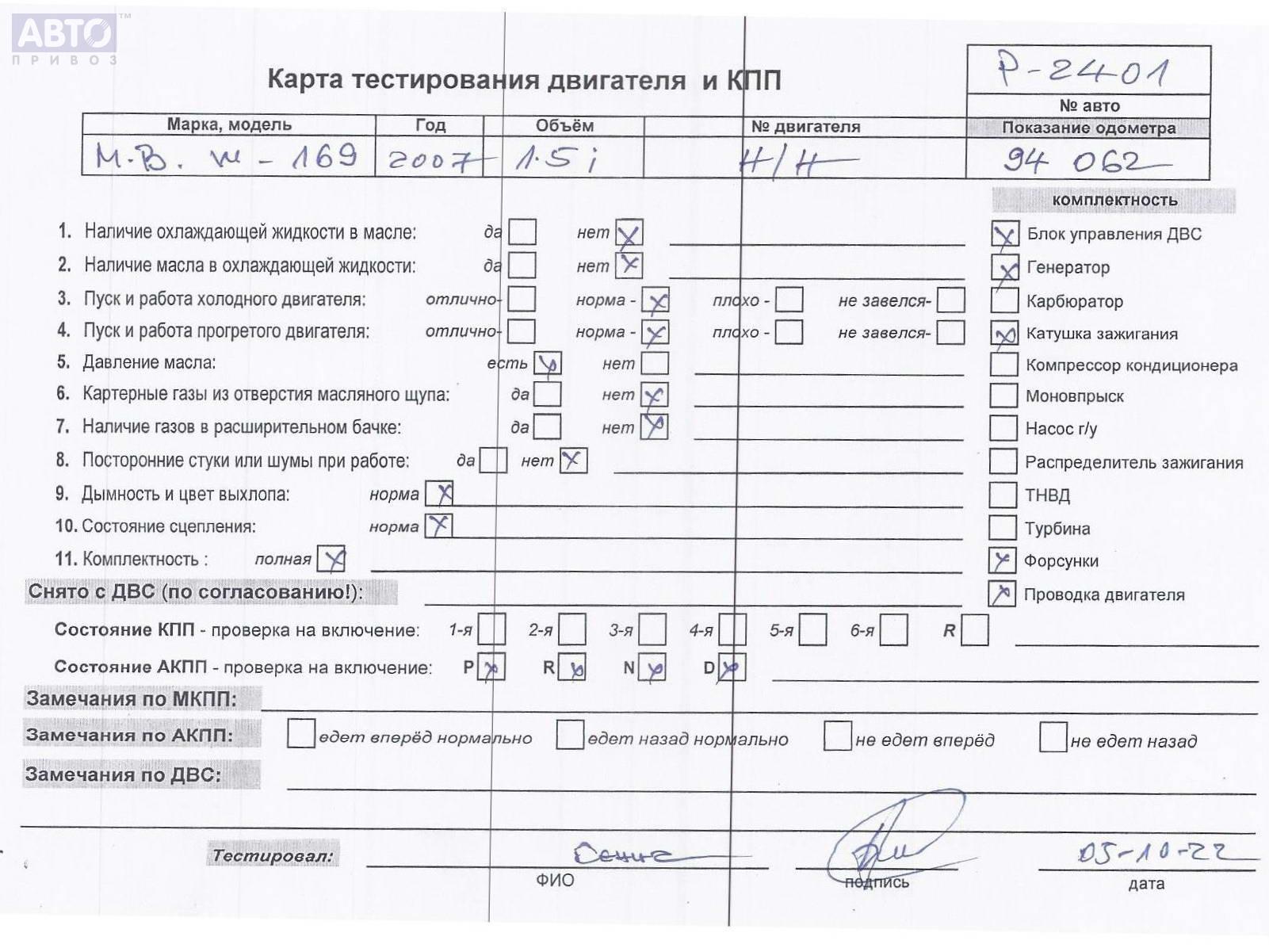 | Марка / Модель / Год: | Mercedes A-Class W169 (2004-2012) 2007 |