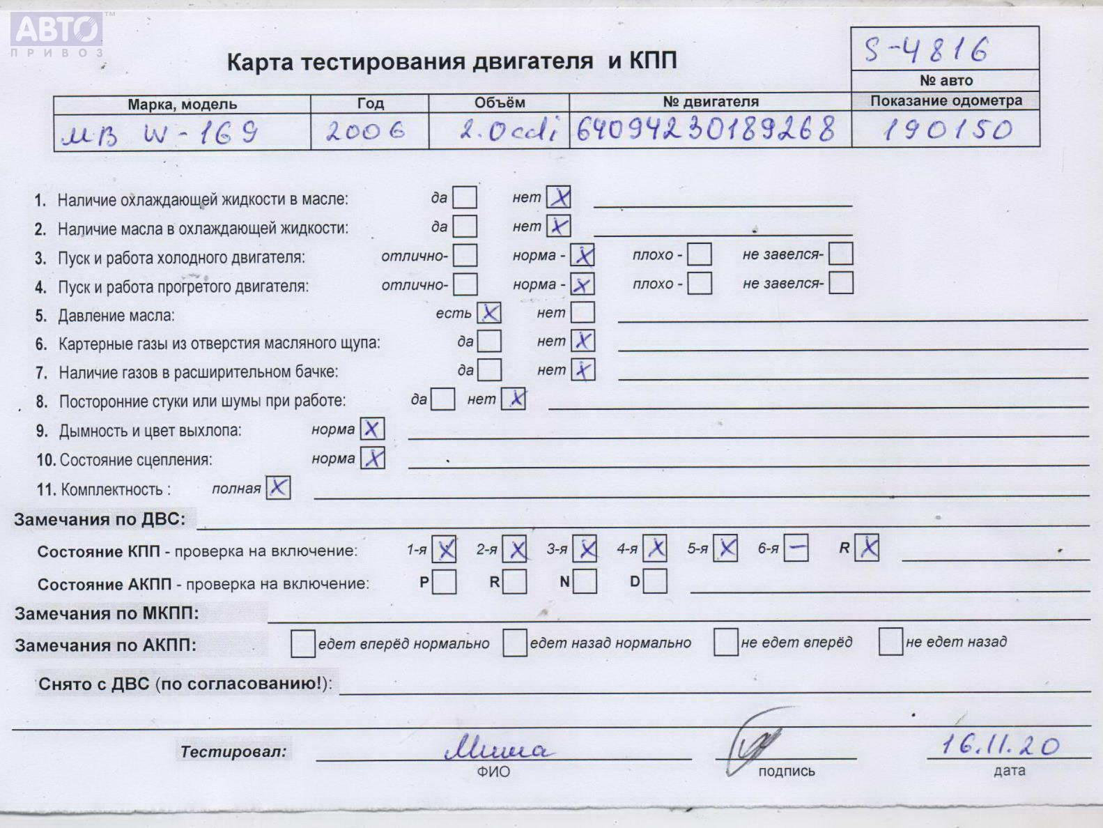 | Марка / Модель / Год: | Mercedes A-Class W169 (2004-2012) 2006 |