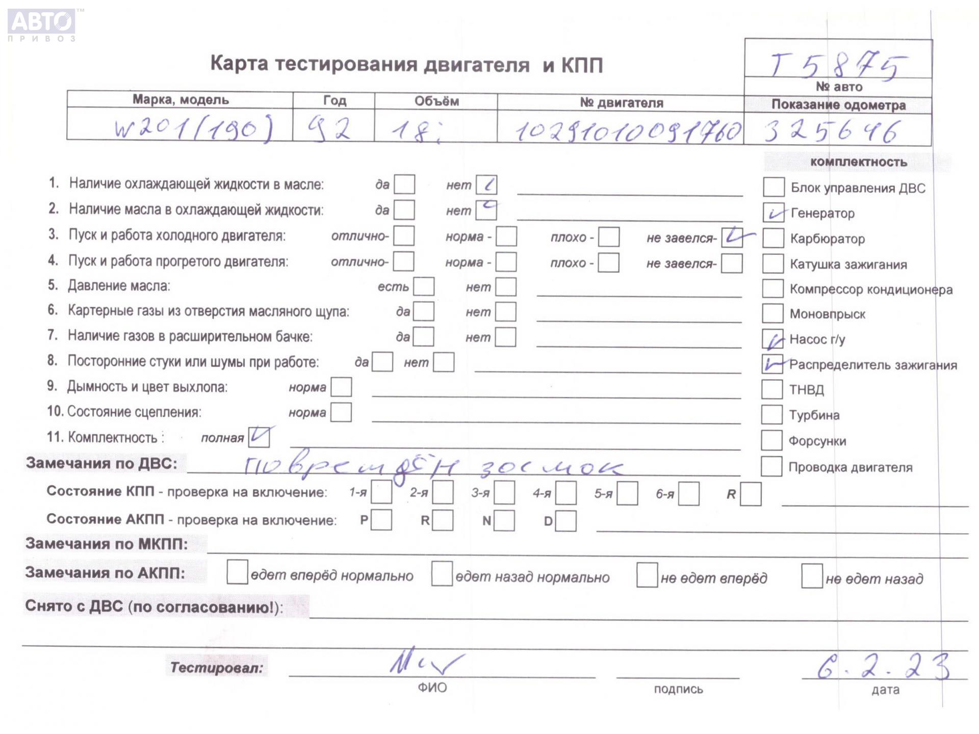 | Марка / Модель / Год: | Mercedes 190 W201 (1982-1993) 1992 |