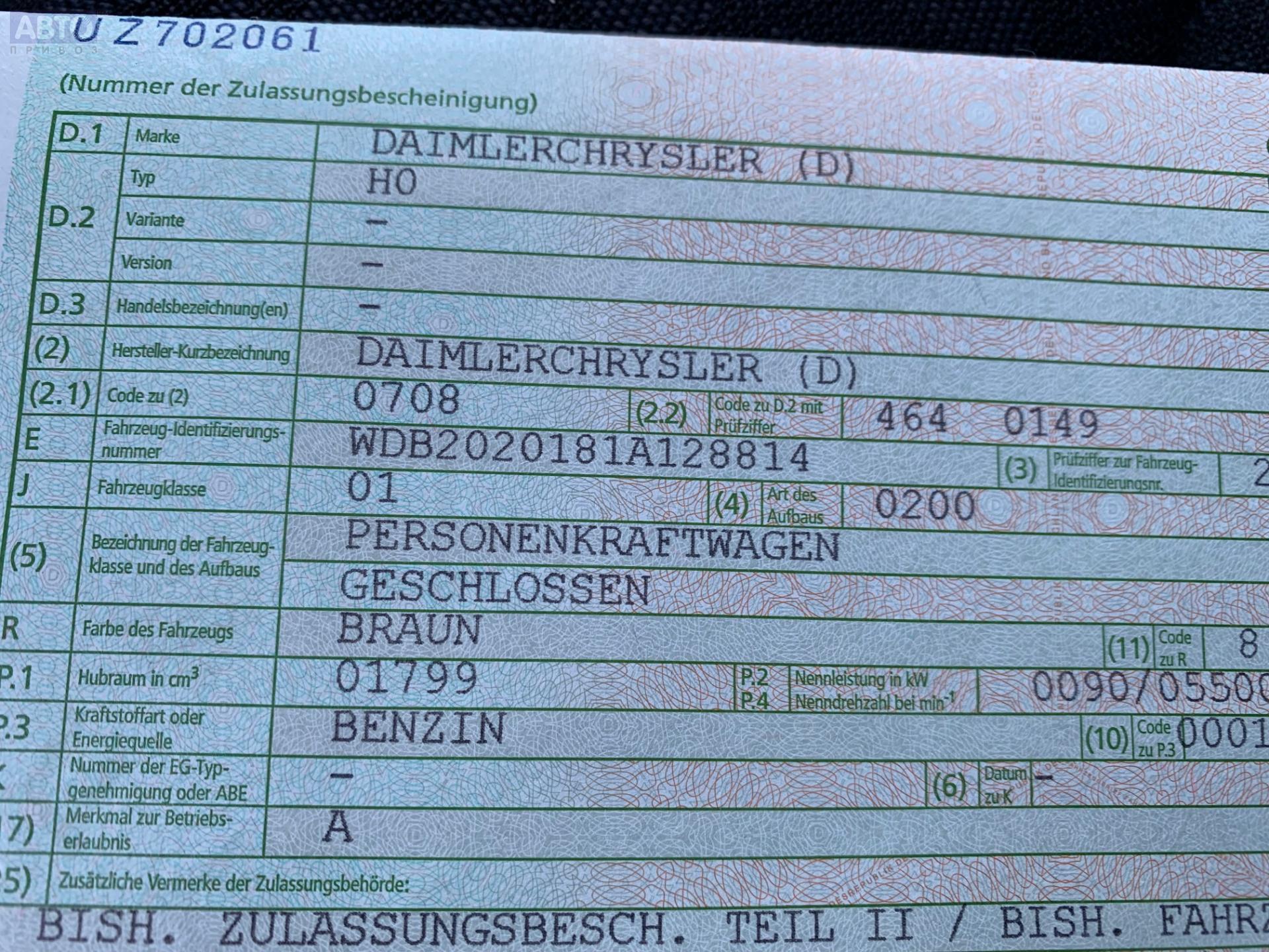 | Автомобиль / VIN: | T4581 WDB2020181A128814 |
