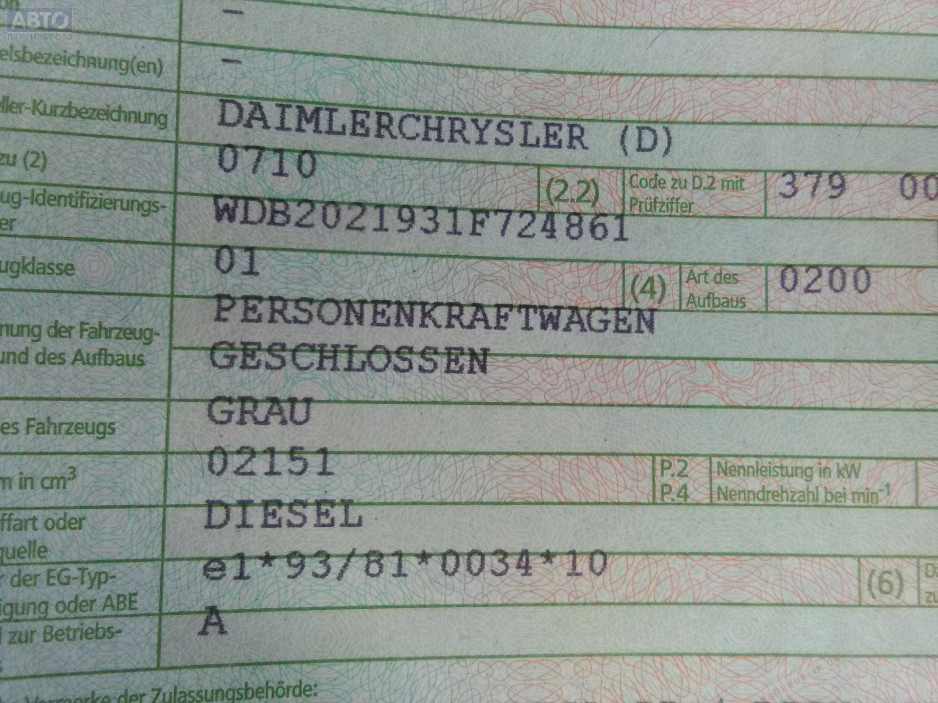 | Автомобиль / VIN: | L8684 WDB2021931F724861 |