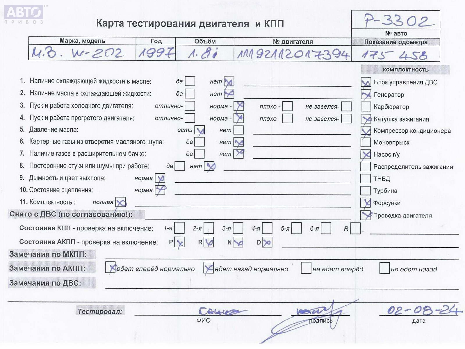 | Автомобиль / VIN: | P3302 WDB2020181A487205 |