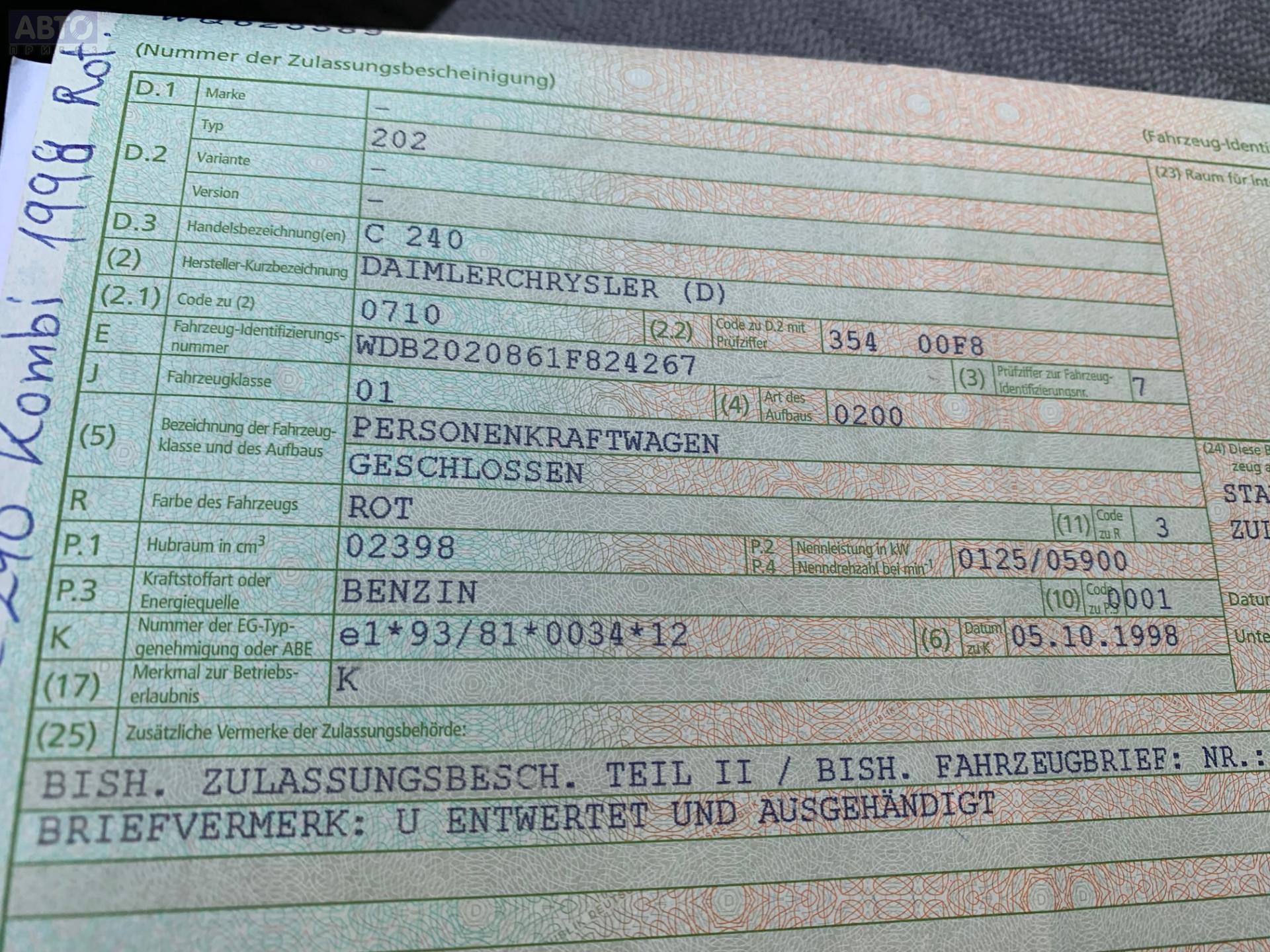 | Автомобиль / VIN: | T2137 WDB2020861F824267 |