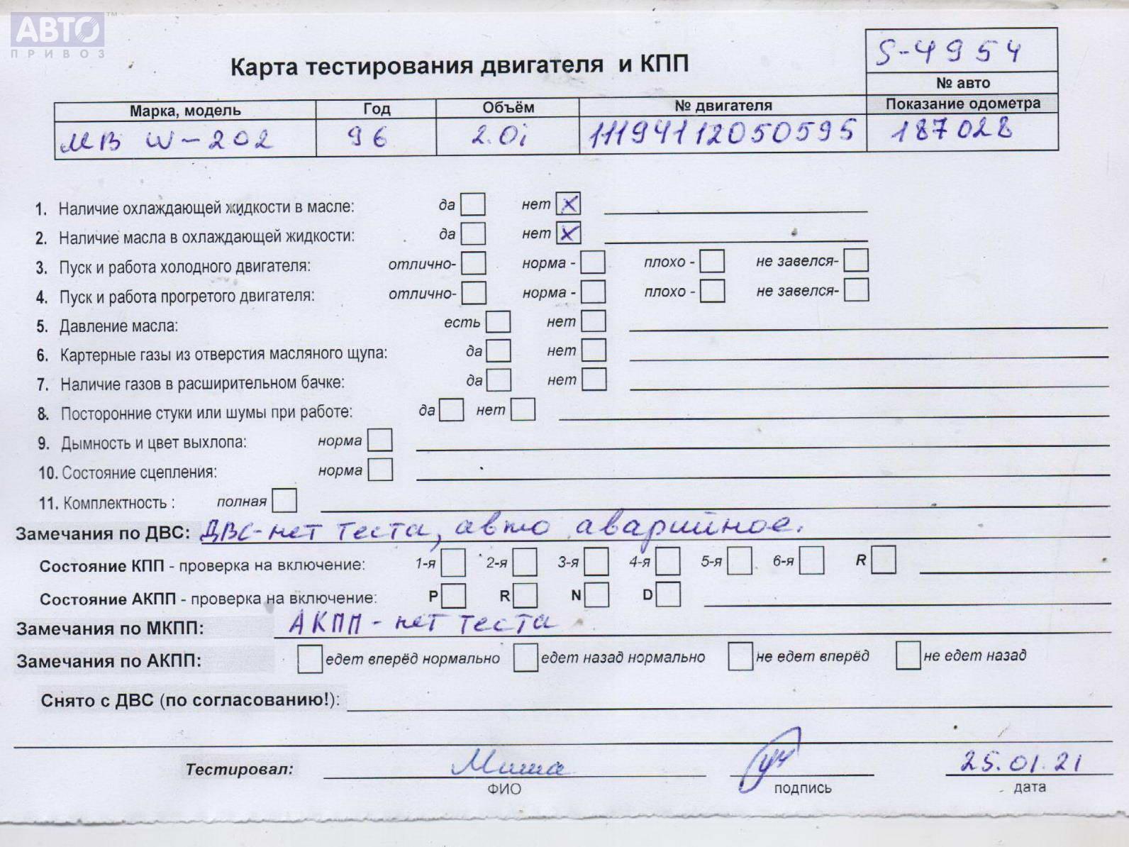 | Автомобиль / VIN: | S4954 WDB2020201A407196 |