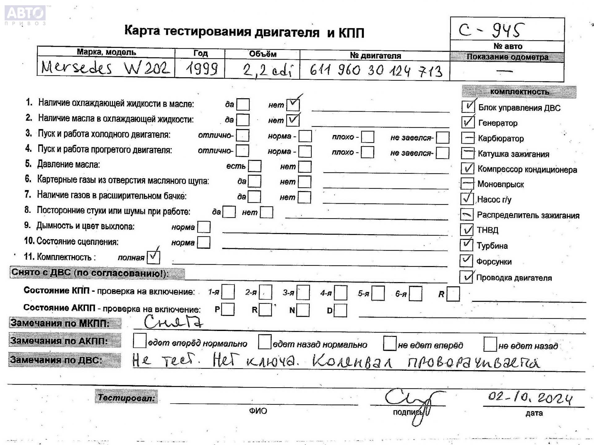 | Автомобиль / VIN: | C0945 WDB2021931F879383 |