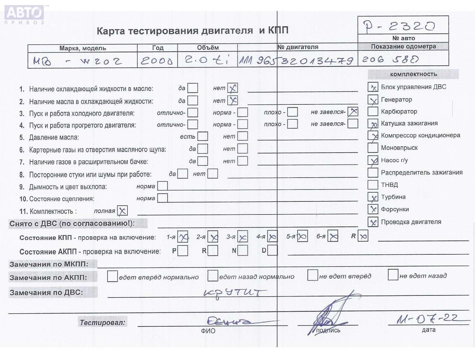 | Автомобиль / VIN: | P2320 WDB2020871F986692 |