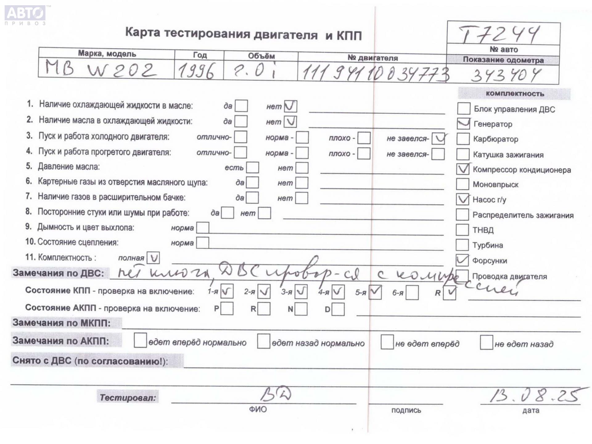 | Автомобиль / VIN: | T7244 WDB2020201F398487 |