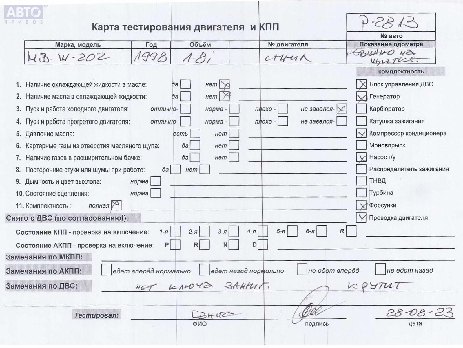 | Автомобиль / VIN: | P2813 WDB2020781F811221 |