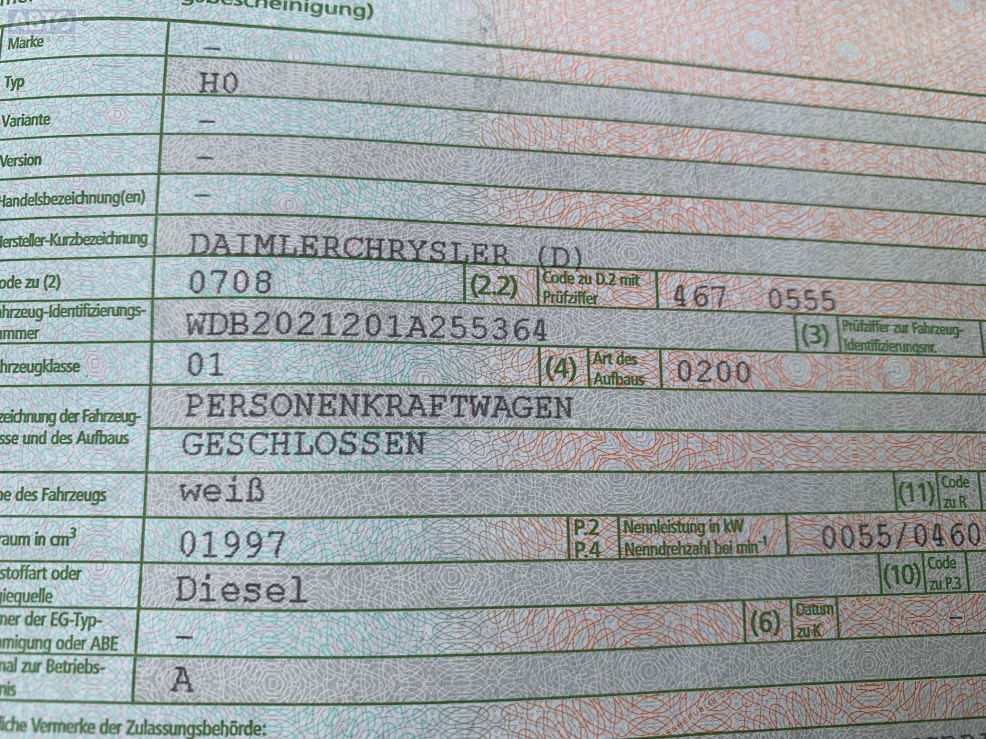 | Автомобиль / VIN: | T5055 WDB2021201A255364 |