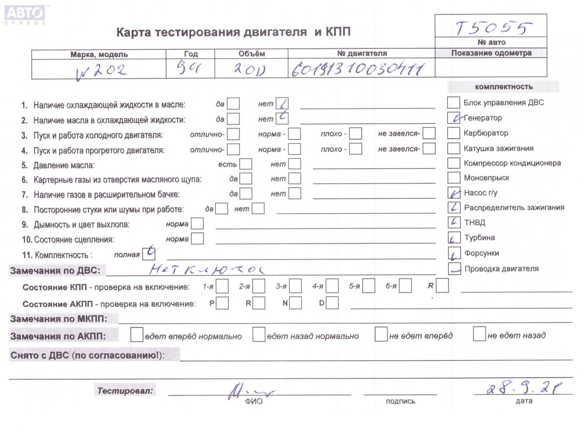| Марка / Модель / Год: | Mercedes C-Class W202 (1993-2000) 1995 |