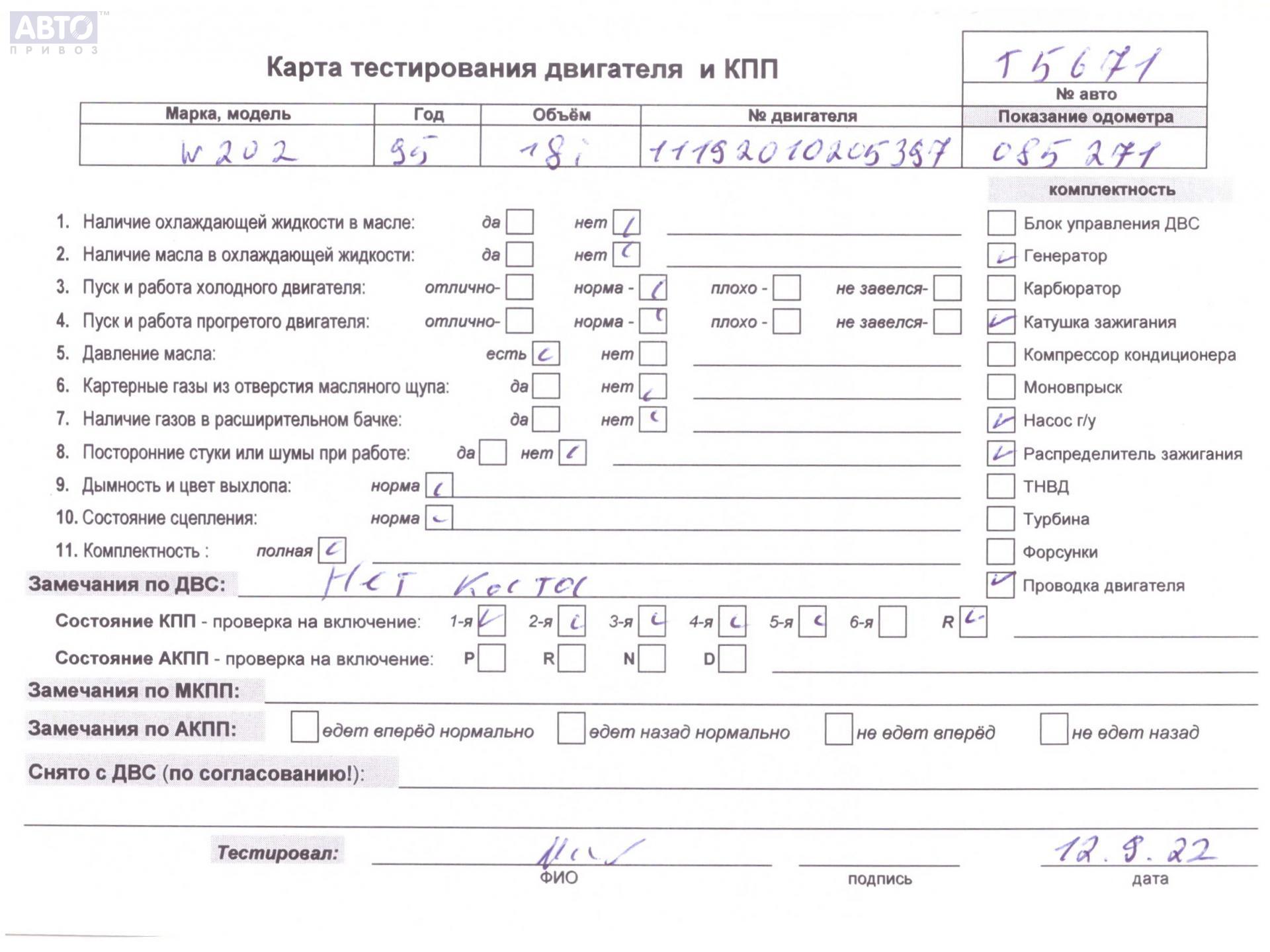 | Марка / Модель / Год: | Mercedes C-Class W202 (1993-2000) 1995 |