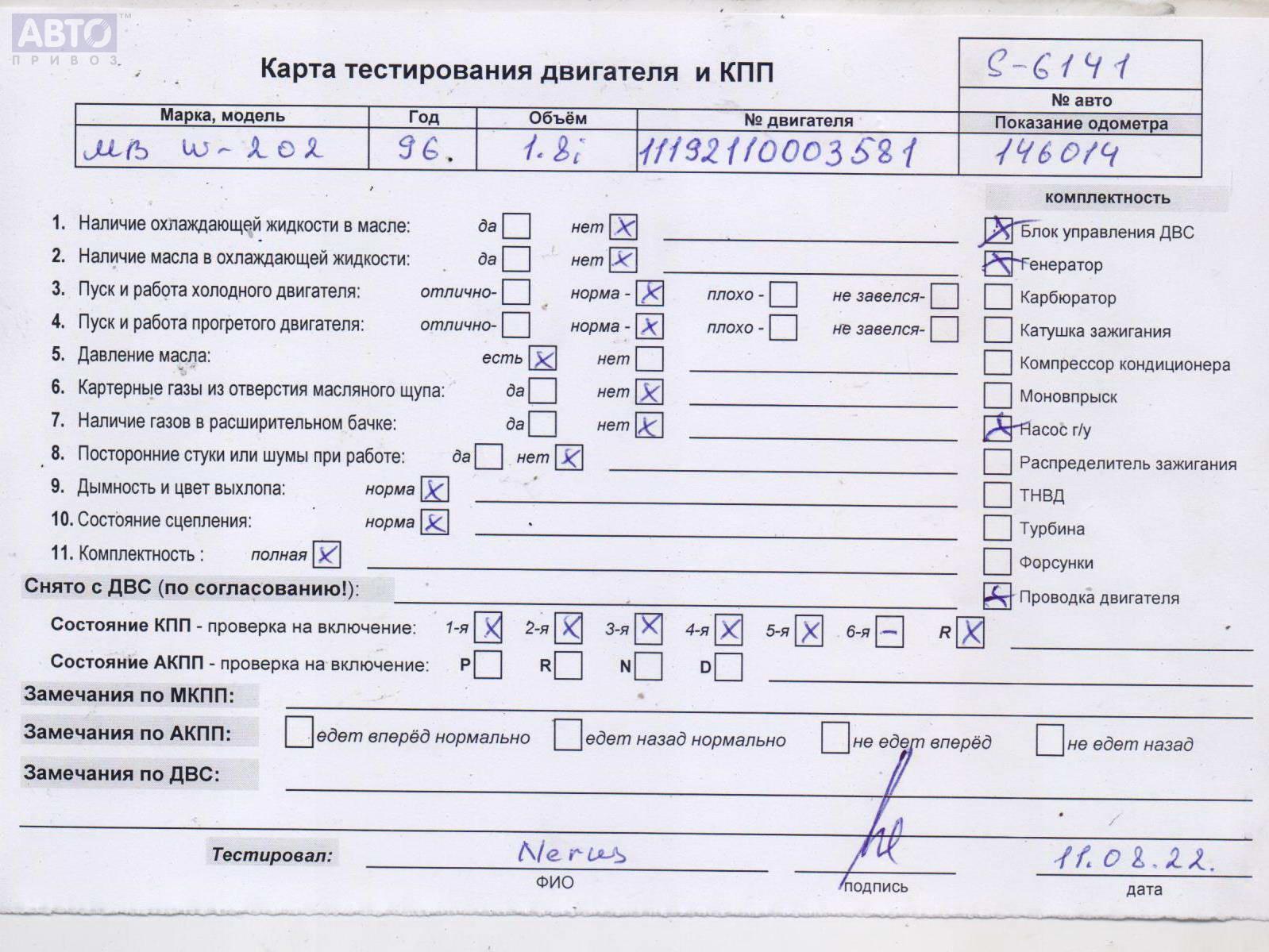 | Автомобиль / VIN: | S6141 WDB2020181F486544 |