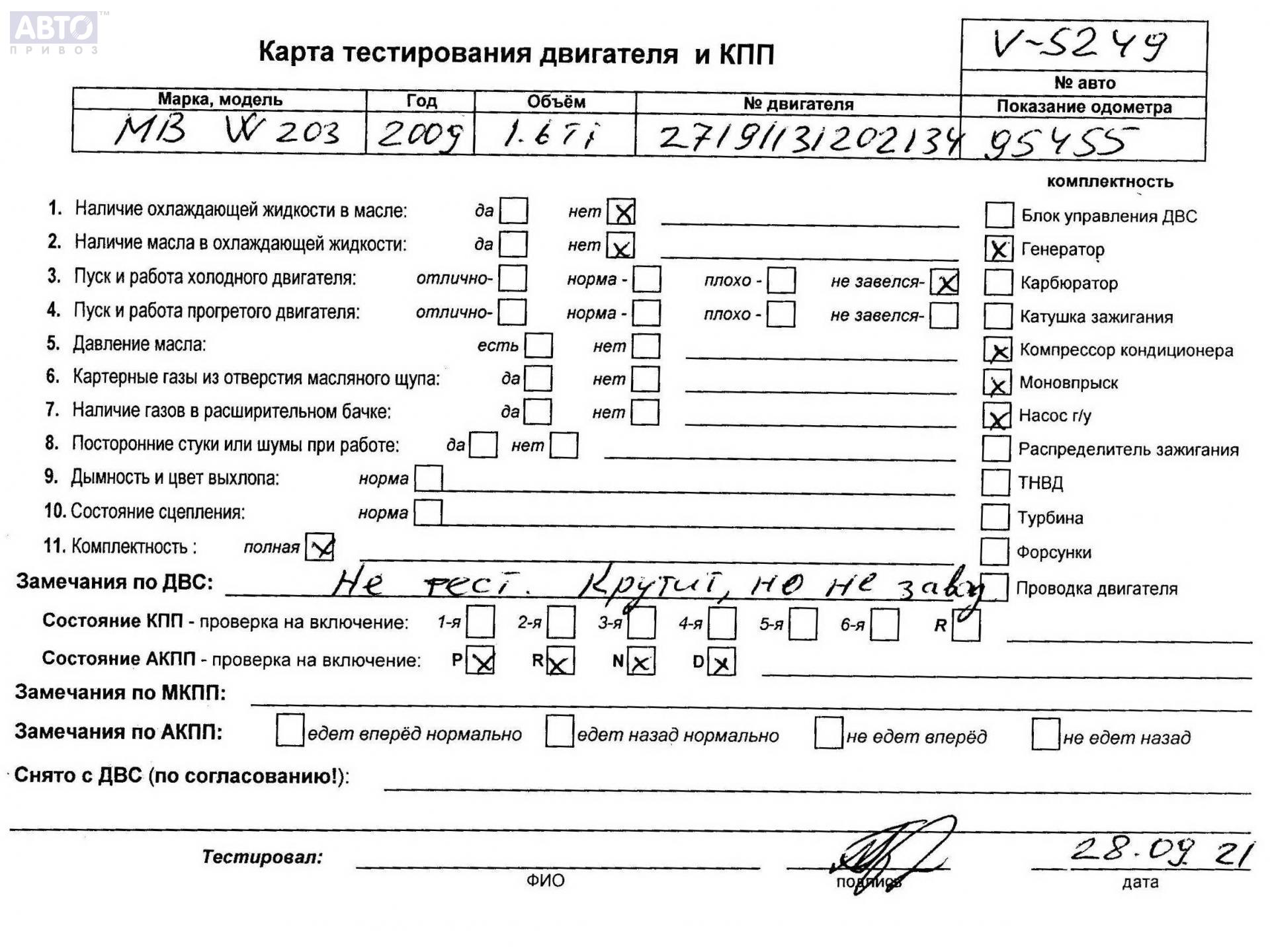 | Марка / Модель / Год: | Mercedes CLC-Class CL203 (2008-2011) 2009 |