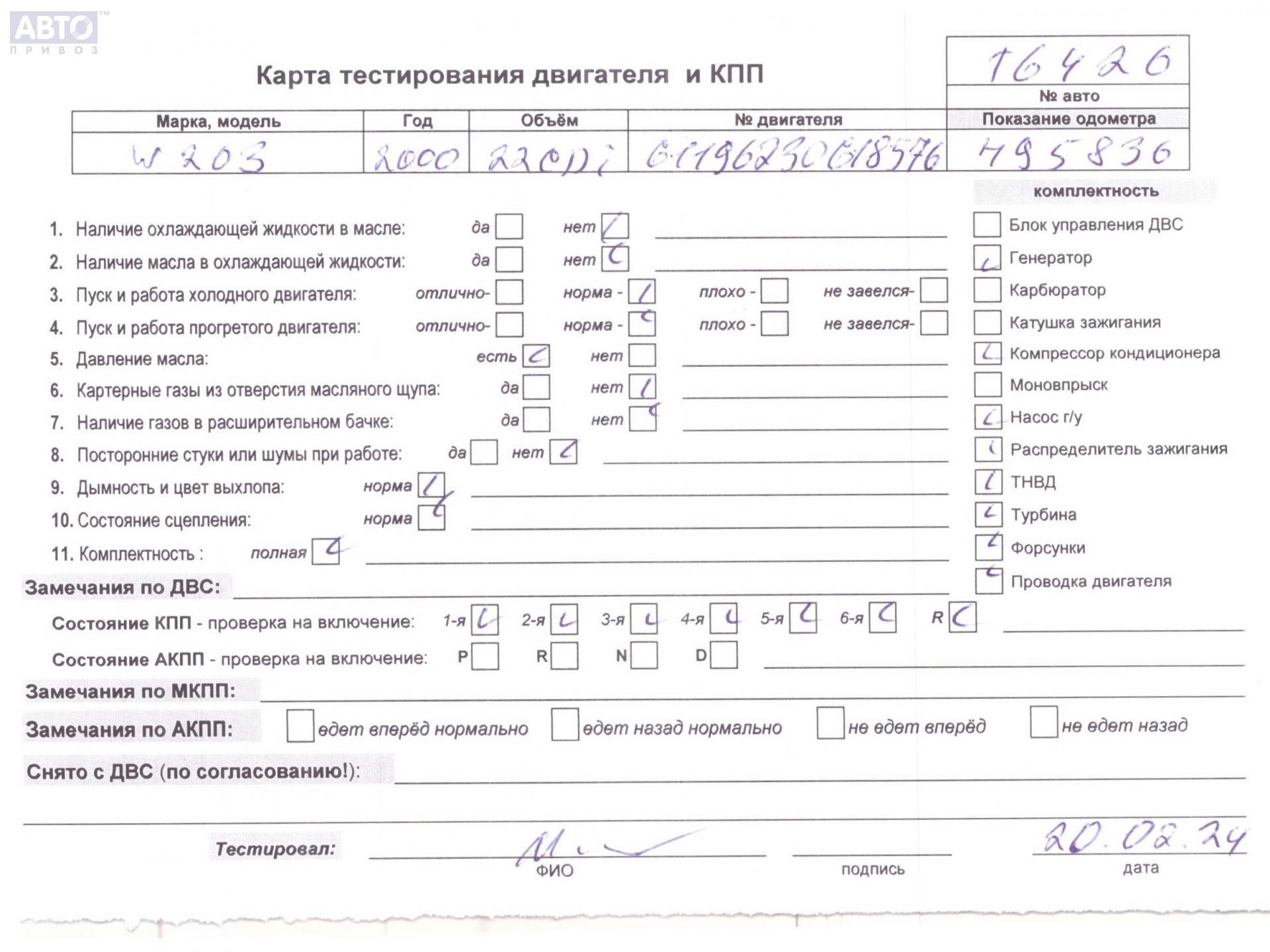 | Марка / Модель / Год: | Mercedes C-Class W203 (2000-2006) 2000 |