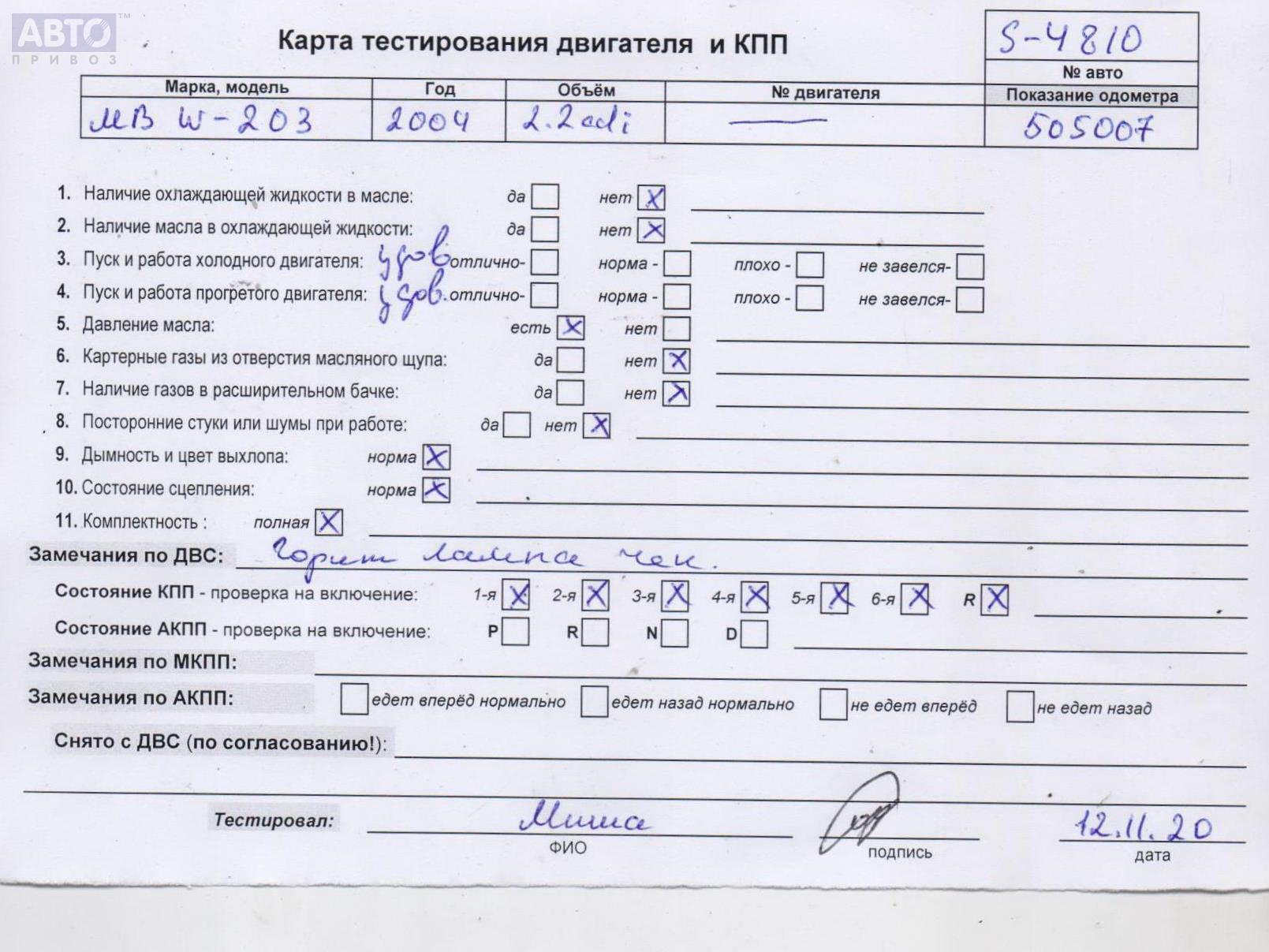 | Марка / Модель / Год: | Mercedes C-Class W203 (2000-2006) 2005 |