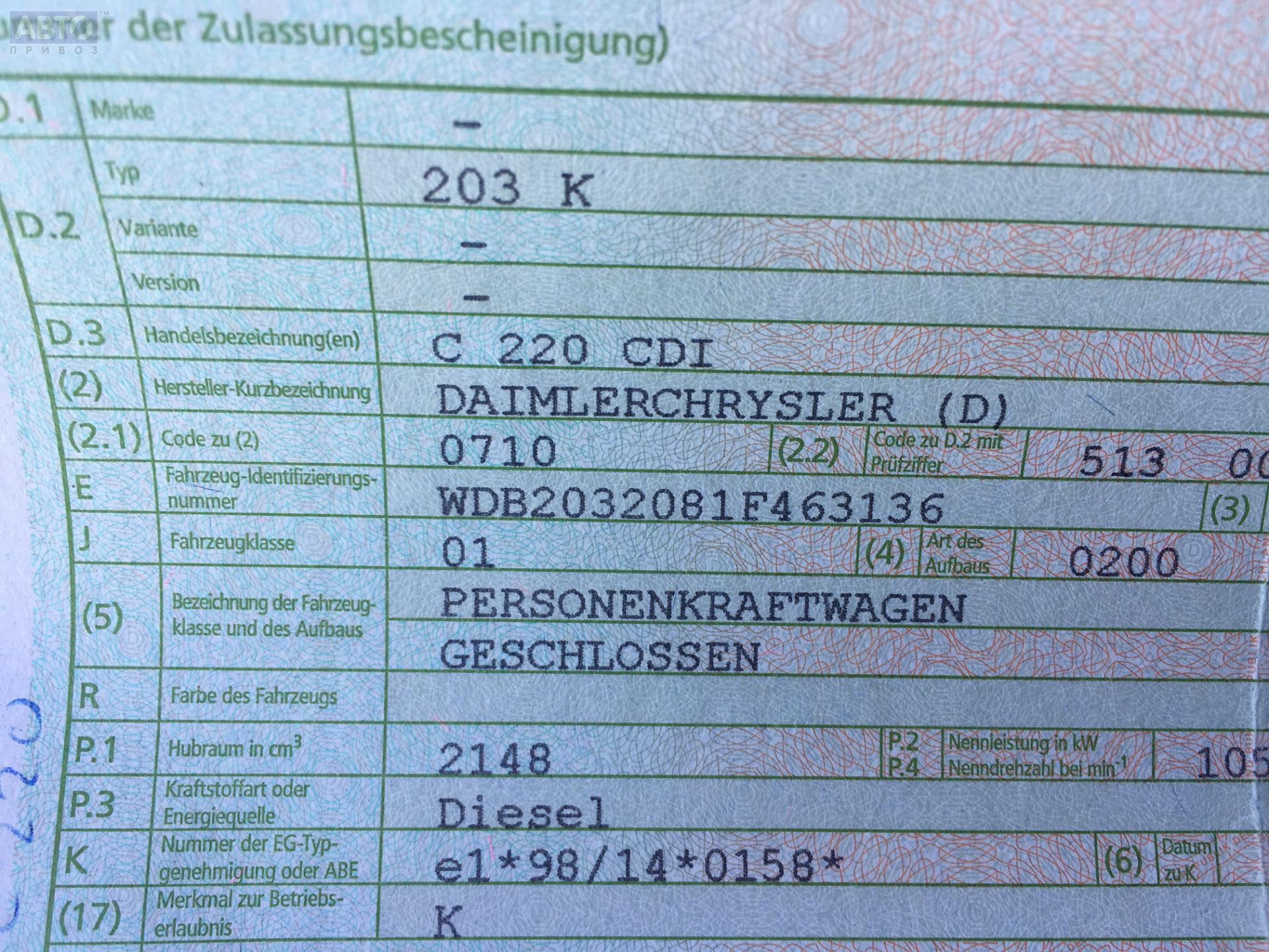 | Марка / Модель / Год: | Mercedes C-Class W203 (2000-2006) 2003 |