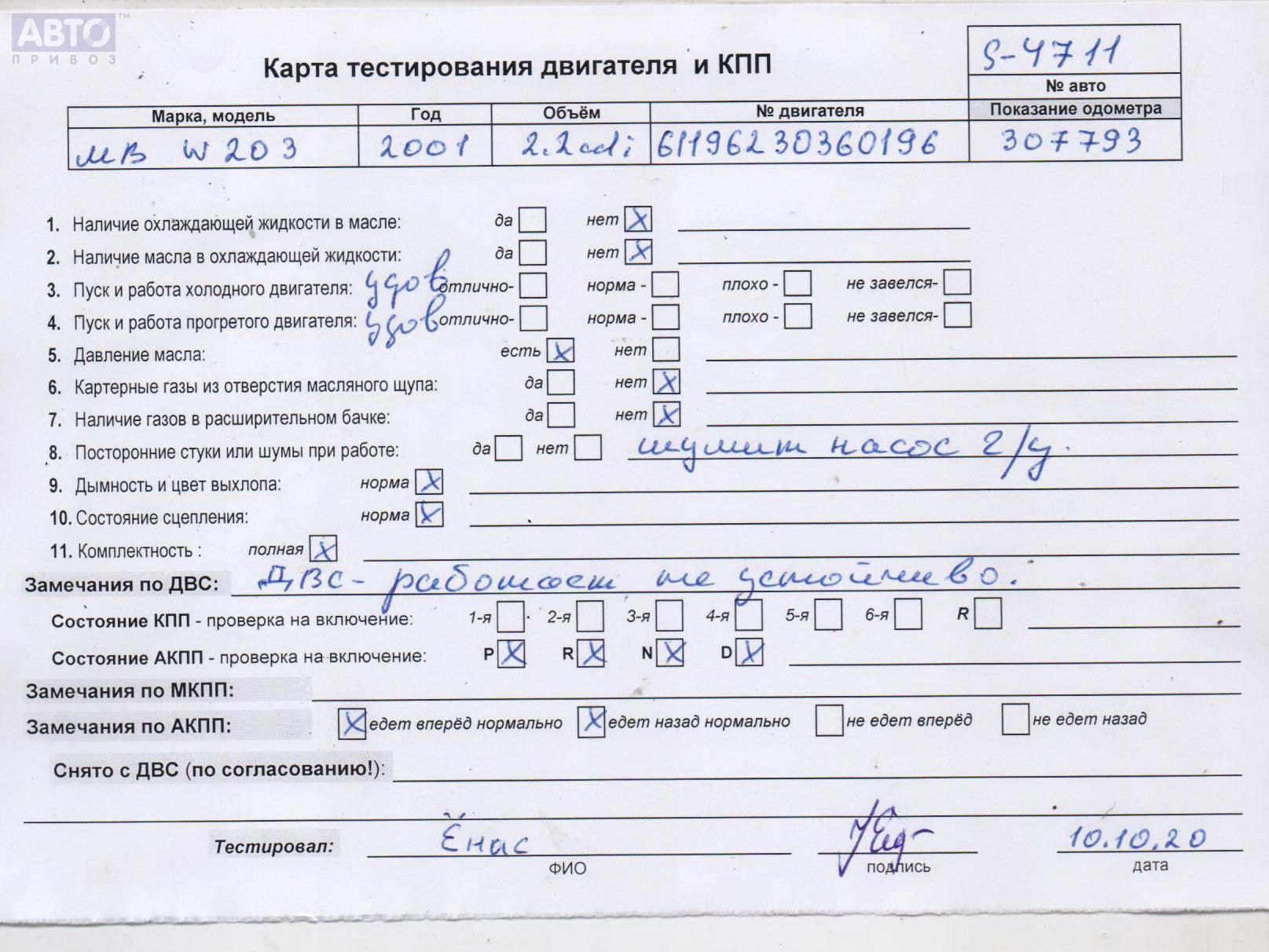 | Марка / Модель / Год: | Mercedes C-Class W203 (2000-2006) 2001 |