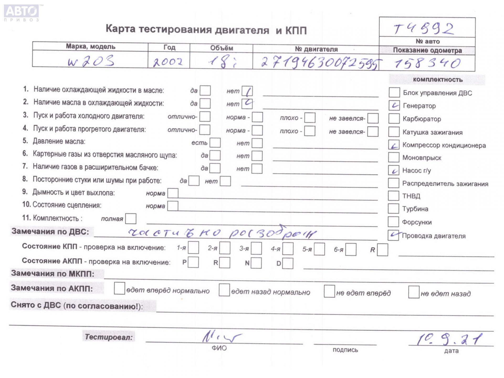 | Марка / Модель / Год: | Mercedes C-Class W203 (2000-2006) 2002 |