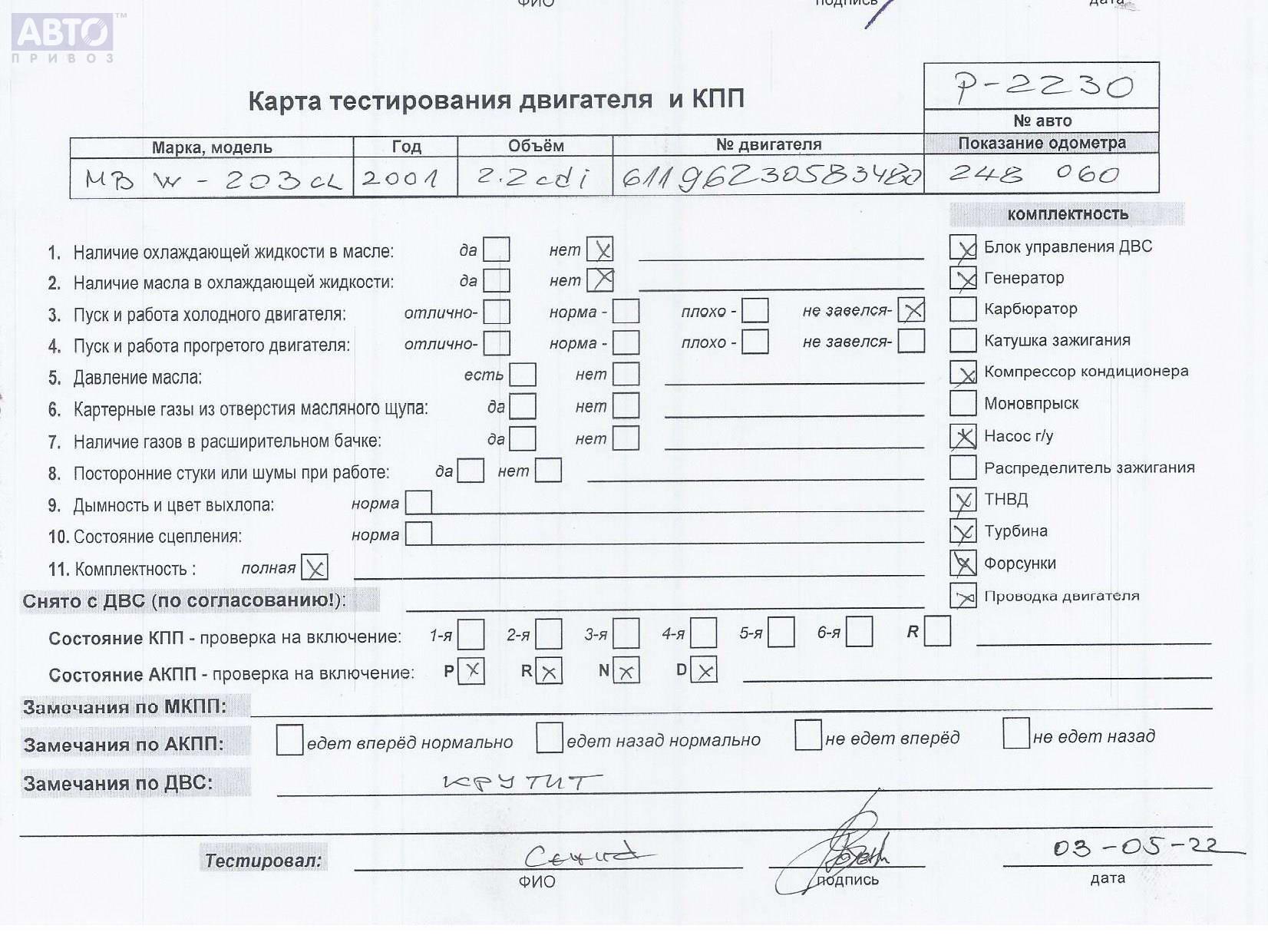 | Автомобиль / VIN: | P2230 WDB2037061A413045 |
