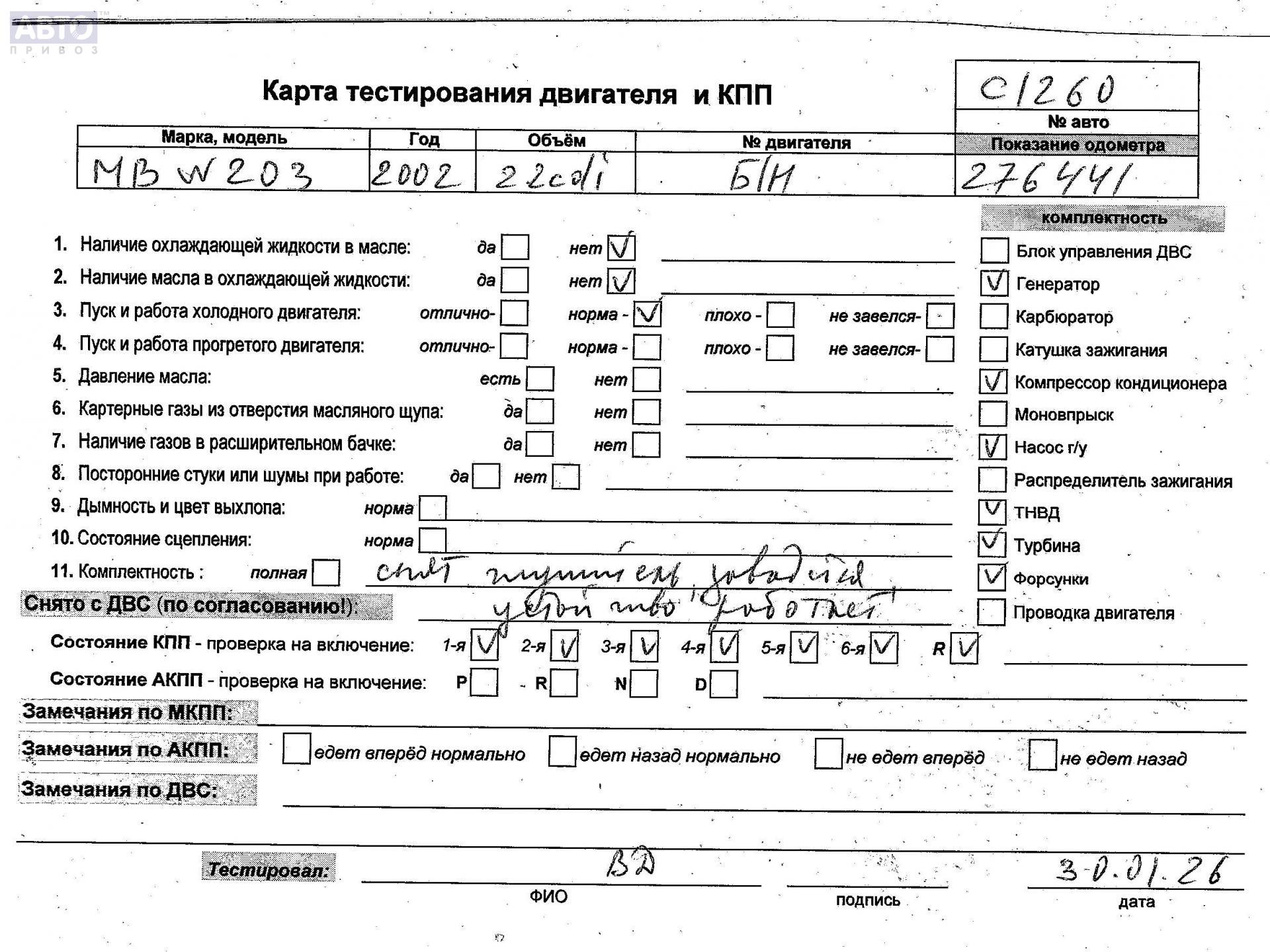 | Автомобиль / VIN: | C1260 WDB2032041F270744 |