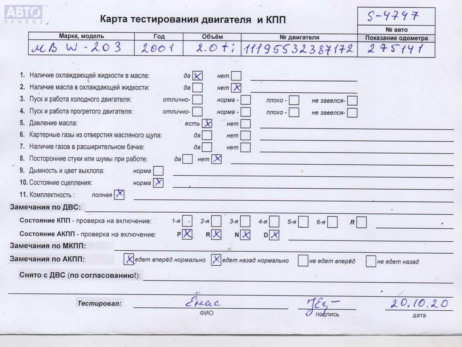 | Марка / Модель / Год: | Mercedes C-Class W203 (2000-2006) 2001 |