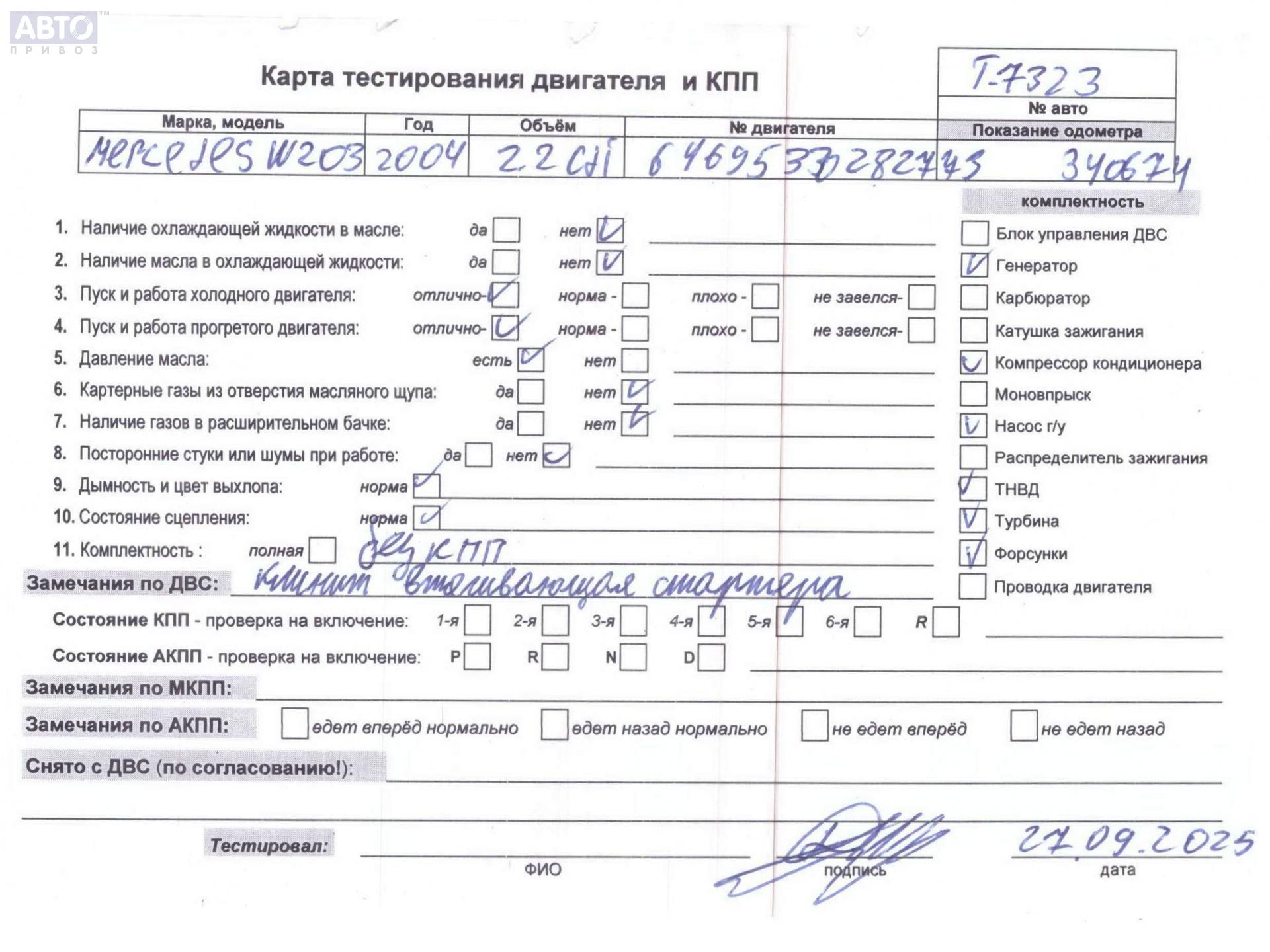 | Марка / Модель / Год: | Mercedes C-Class W203 (2000-2006) 2004 |