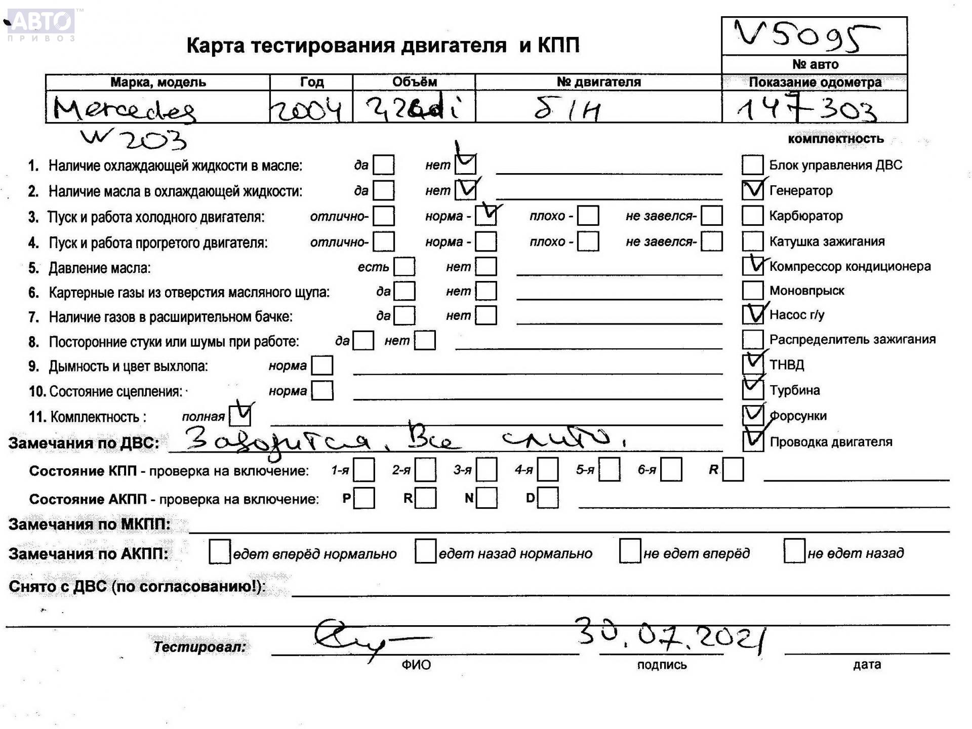 | Марка / Модель / Год: | Mercedes C-Class W203 (2000-2006) 2003 |