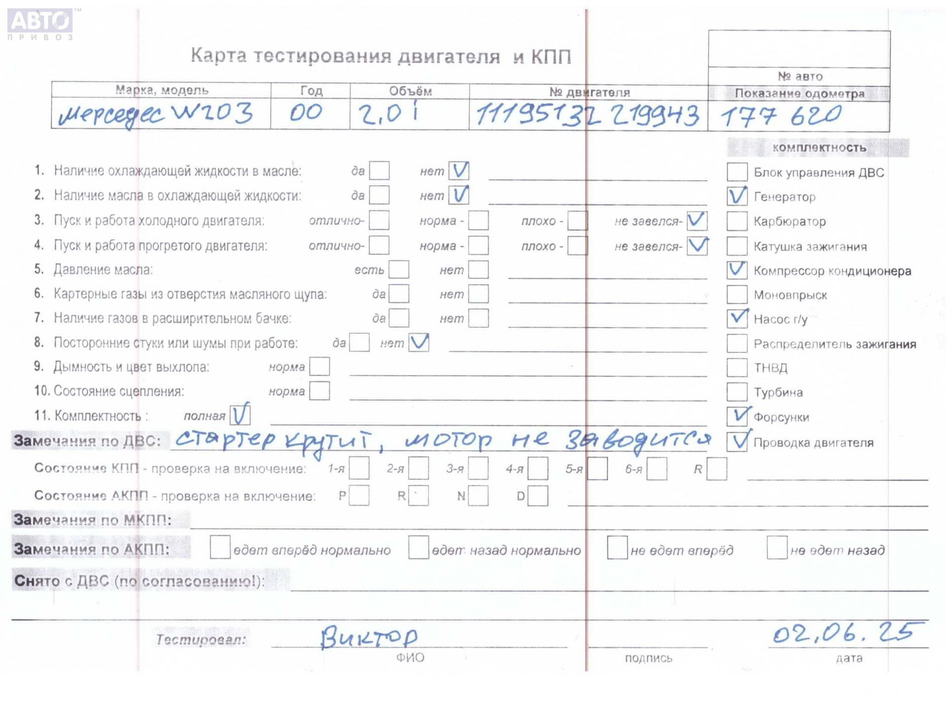 | Марка / Модель / Год: | Mercedes C-Class W203 (2000-2006) 2001 |