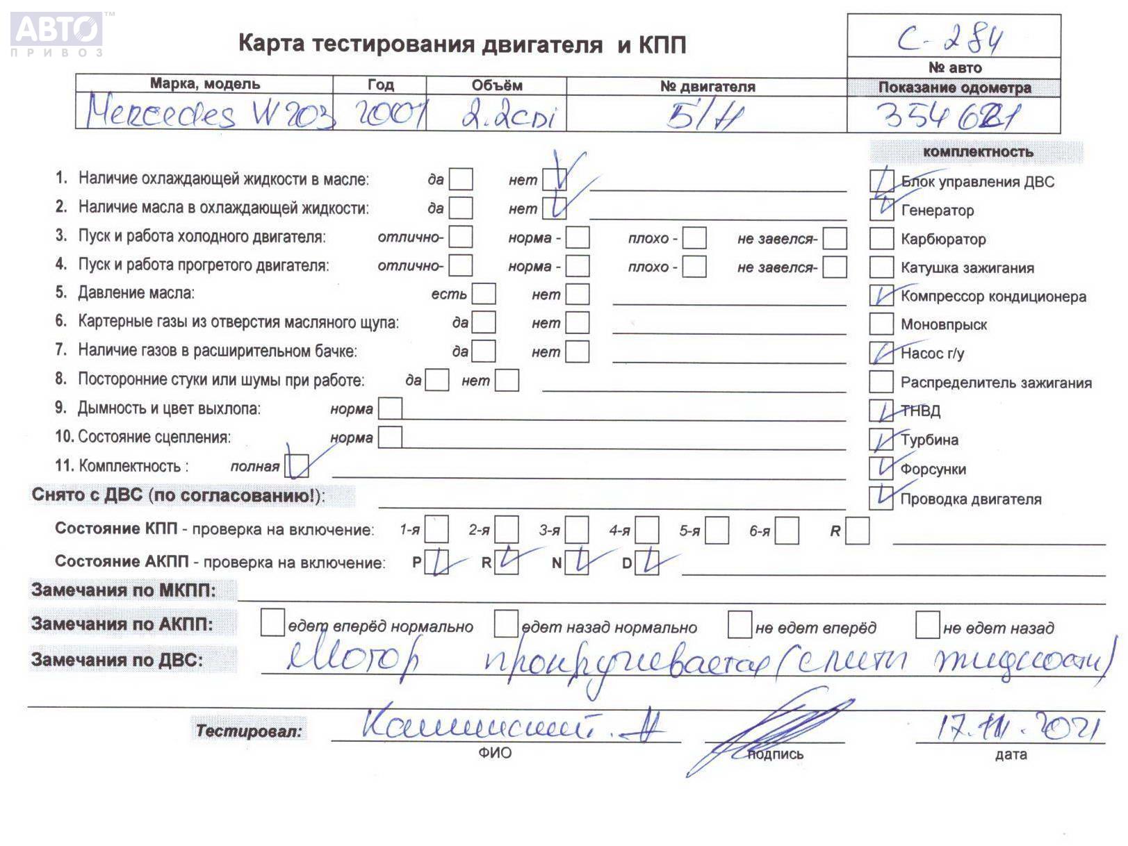 | Марка / Модель / Год: | Mercedes C-Class W203 (2000-2006) 2001 |
