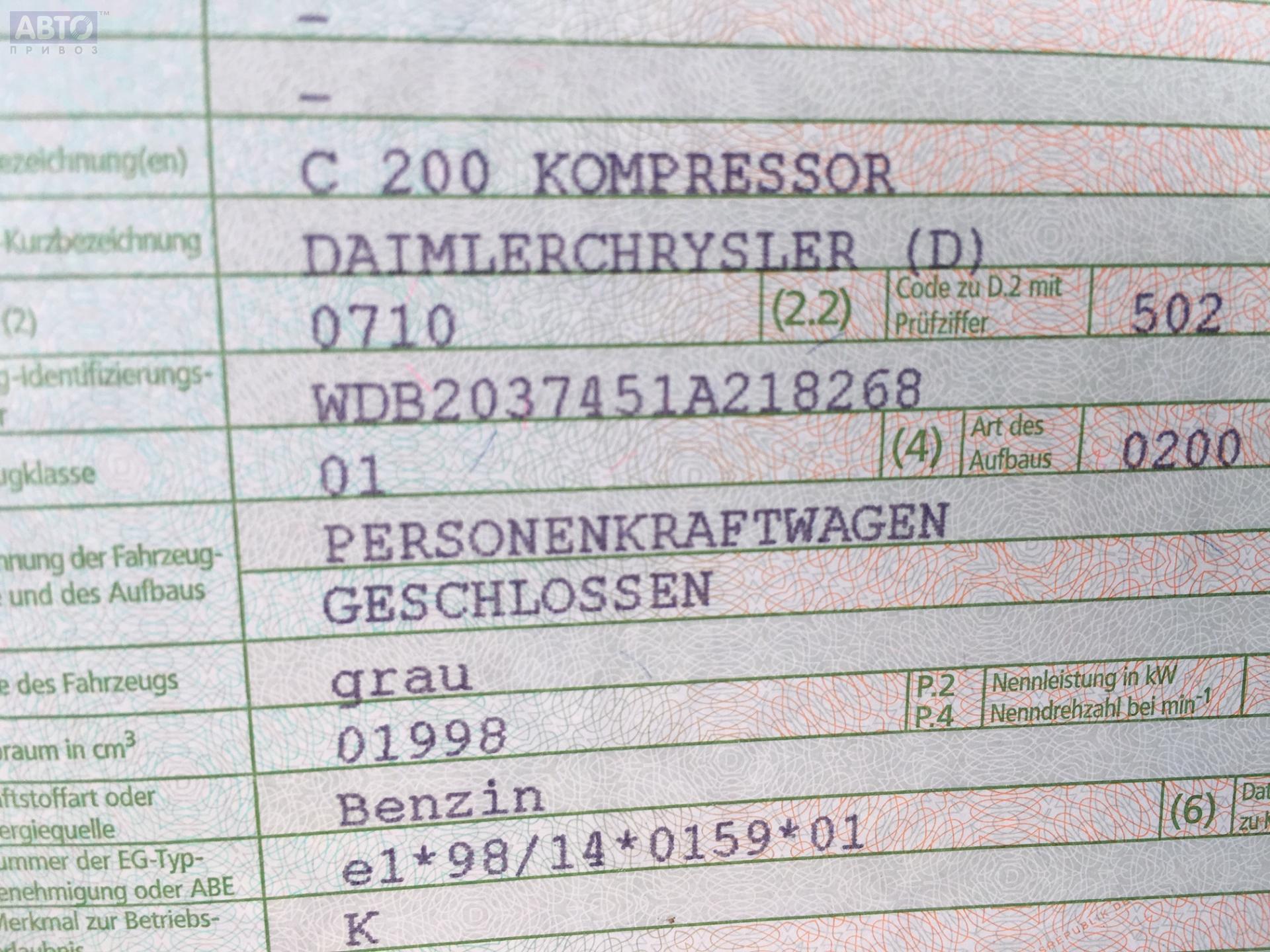 | Марка / Модель / Год: | Mercedes C-Class W203 (2000-2006) 2001 |