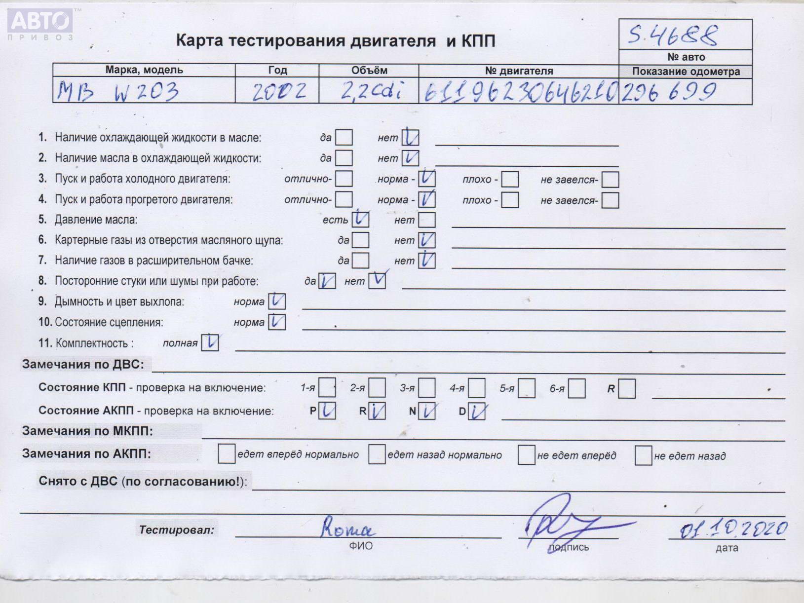 | Автомобиль / VIN: | S4688 WDB2032041F396434 |