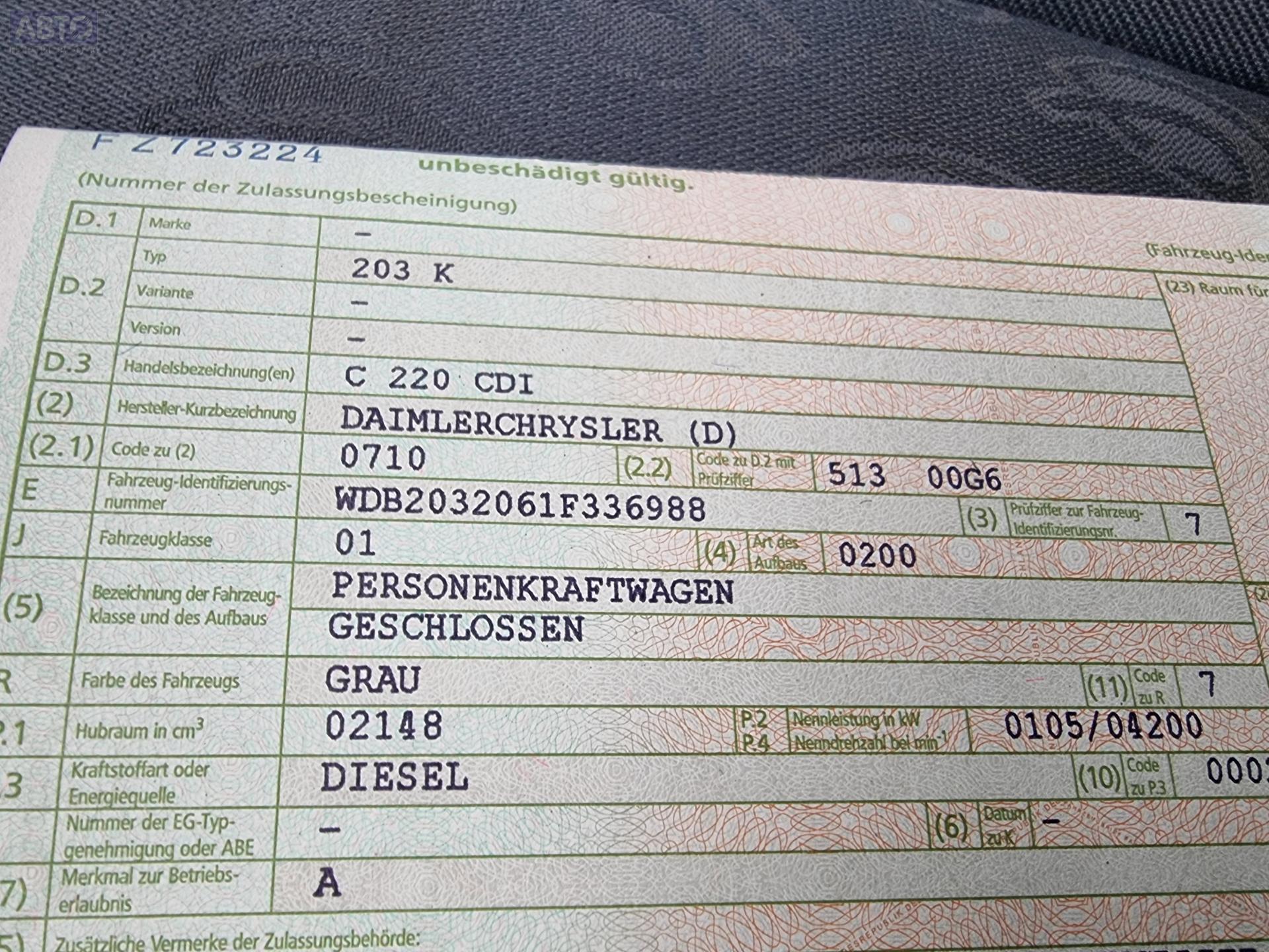 | Марка / Модель / Год: | Mercedes C-Class W203 (2000-2006) 2002 |