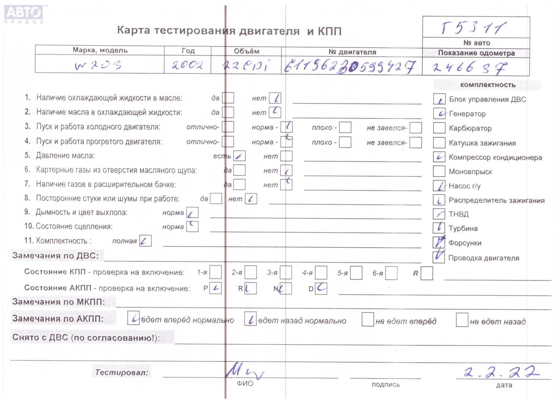 | Автомобиль / VIN: | T5311 WDB2032061F336988 |