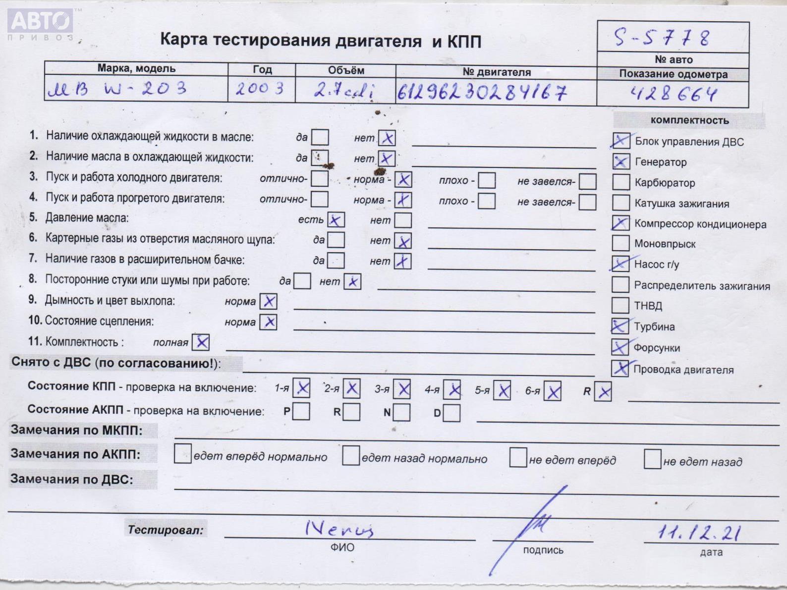 | Марка / Модель / Год: | Mercedes C-Class W203 (2000-2006) 2003 |